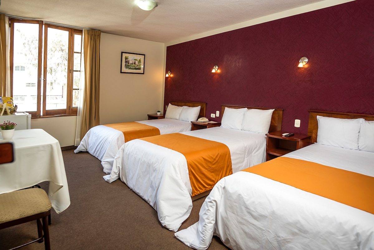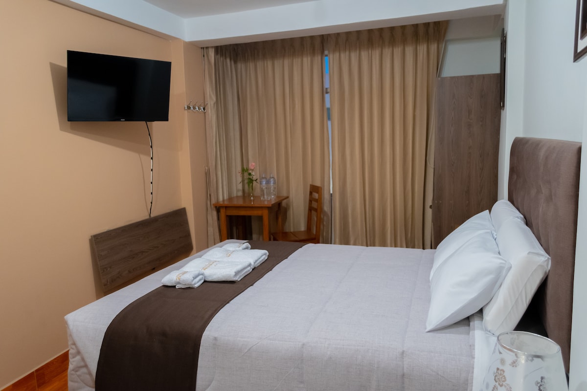 Habitaciones con cama grande y baño privado en hotel, ubicada en avenida principal de Arequipa. Cerca de centros comerciales, restaurantes, bancos, además de la Plaza de Cayma y Yanahuara. Ideal para parejas que buscan privacidad, comodidad y fácil acceso a la ciudad. Como complemento, también ofrecemos habitaciones con cama doble, perfectas para viajes familiares o grupos que deseen compartir estancia en un mismo lugar.
