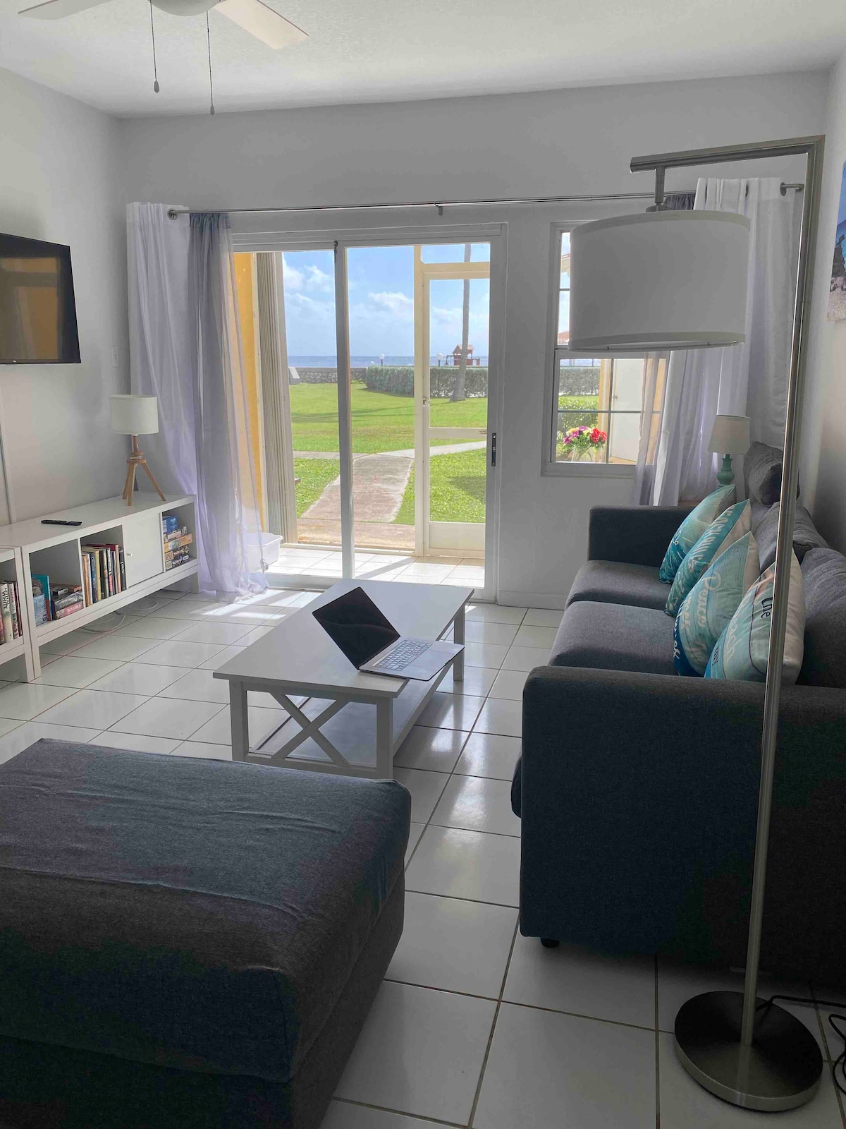 Kick back and relax in this calm, stylish loft situated in an oceanfront community- a perfect Caribbean get away. A central location allows for easy access by car to all the areas of the Island. The property offers open spaces, 5 pools, an oceanfront walkway and a Cabana. Why not enjoy a morning swim in the pool. a glass of wine on the porch, or sunset on the boardwalk. Only 5 minute drive east is the sandy Spotts beach which is well-known for its abundant sea life, including green sea turtles.