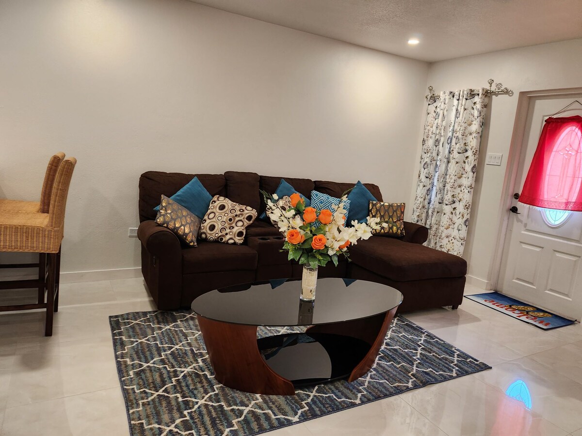 A lovely large studio 5 min walk to the ocean and diving or dining at Cobalt Coast, Nova. The studio space is an open floor plan. 15 min walk to Boatswains Beach, Turtle Farm and Restaurants. There is private entrance, parking for a small car (if it is a medium car you will be asked to park across from the gate). Super clean, with lovely furnishings. The home is recently built and is well maintained. 10 minute drive to 7 Mile Beach. Barkers Beach is great for kite surfing and is also close by