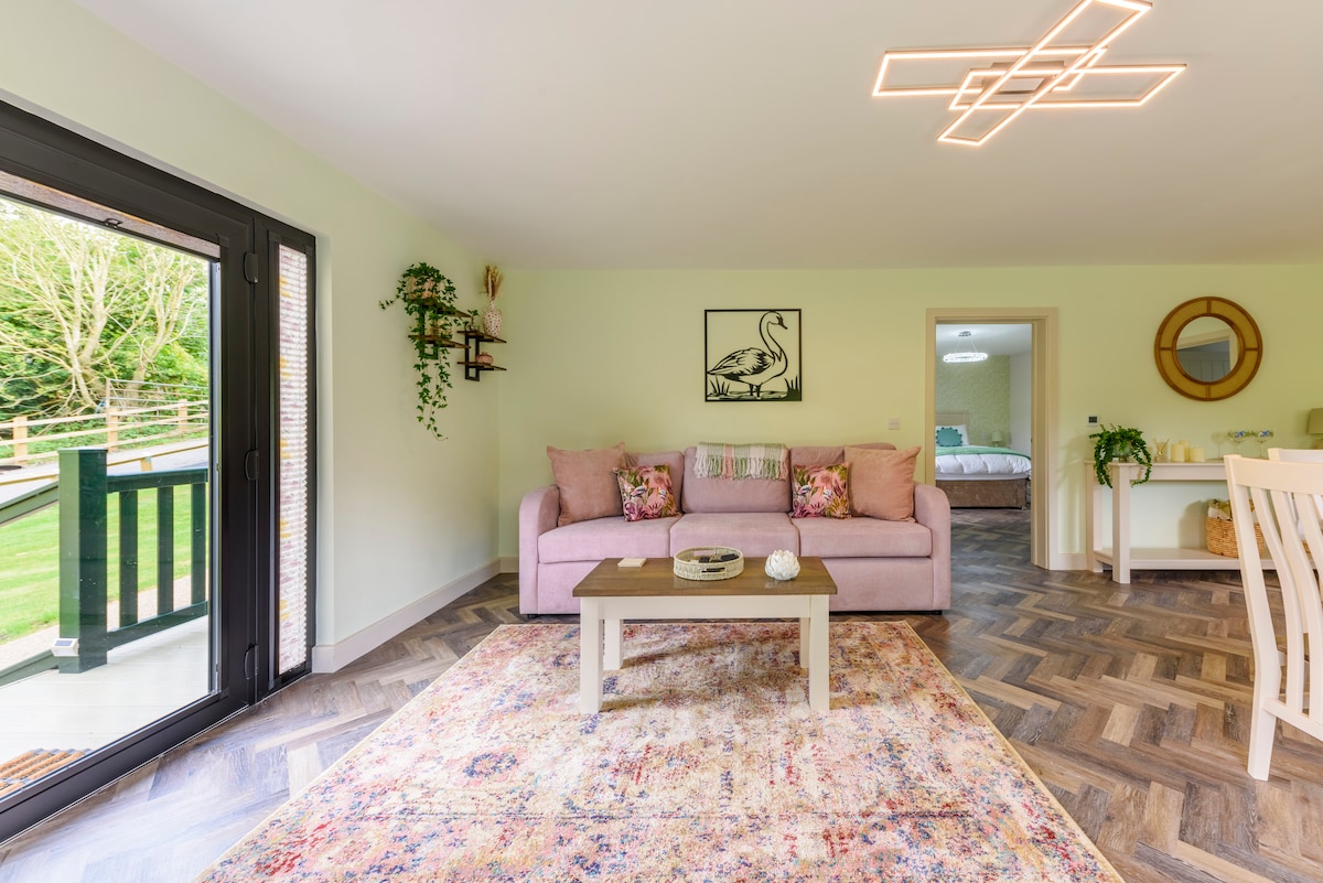 The Orchard Barn at Old Court Farm. Our country hideaway has been lovingly brought to life from its humble beginnings as a Old cider barn. Designed and built here on the farm, this modern conversion brings a luxurious ‘interior feel’ surrounded by never-ending oak beams with views over looking the apple orchards. With 70 acres of near by orchards for you and your pets to ‘roam freely’ it’s a true feeling of the very beautiful English countryside.