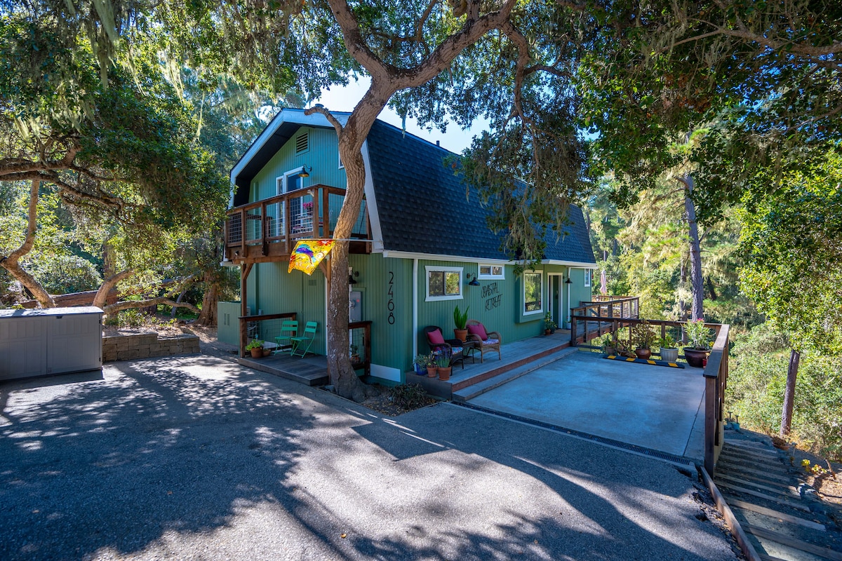 Relax in the jacuzzi hot tub and enjoy a sunset view from your own patio outside this unique eco-friendly suite . The private bottom floor of my split level home features a fully equipped kitchenette. The suite is an ideal couple's getaway or bring the kids and roast marshmallows by the fire. Chill in a hammock and enjoy veggies from our organic garden or kayak the bay. Plug-In for Electric vehicles. 3pm Self-check in. 5-point Covid cleaning protocol. 28 day max stay per California law.