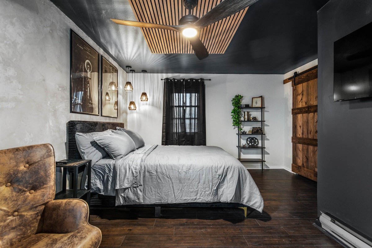 宽敞的独立1卧公寓,配备加大双人床、按摩浴缸和ROKU电视