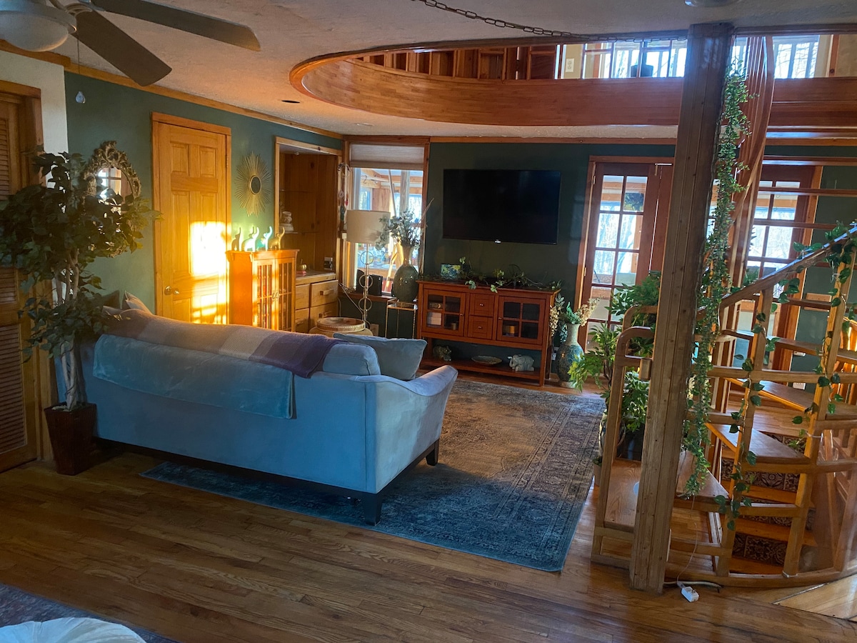 This wing of my renovated and restored 1880’s farmhouse has private front and back entrances leading to the main hallway/parlor. Living room with TV, puzzles, games, cards, magazines, and more. The adjoining kitchen and dining area offers many amenities such as fridge, stove, microwave, coffee service. Under stairs is a half bath. Up the grand staircase are two large queen rooms with full bathrooms en suite, as well as an additional queen bedroom w/out bath. Tasteful, comfortable, thoughtful.