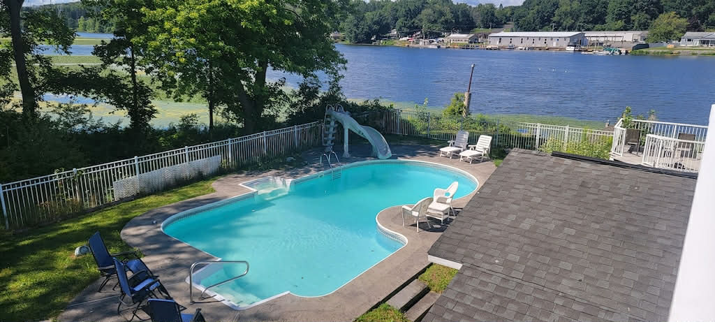 The Ultimate Oswego River Getaway Welcome to your a spacious one-of-a-kind waterfront home located right on the beautiful Oswego River. Enjoy a private swim-spa/hot tub, expansive outdoor space, and riverfront access with stunning sunsets. Peaceful yet centrally located, just minutes from Syracuse, Lake Ontario, golf, wineries, and the Finger Lakes region. Perfect for families and friend groups looking to have memorable get-togethers.