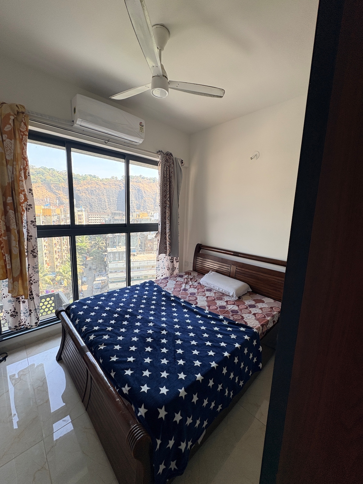 Cozy studio perched atop Aarey Hill near Film City, Goregaon East. Enjoy serene Sahyadri views, peace, and privacy. Includes queen bed, sofa-cum-bed, workstation, WiFi, Smart TV, kitchen with essentials, washroom with toiletries, and a spacious balcony for relaxing. Ideal for 2–3 guests looking for a restful stay away from the city buzz. This is a 1 Room Kitchen studio apartment on 3rd floor with lift facility. Guests don't have to climb even a single staircase.
