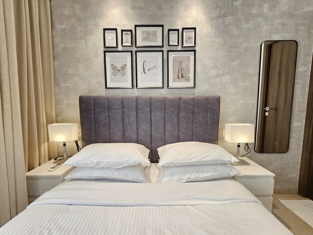 Stay in luxury at our fully furnished 1BHK apartment, offering a cozy bedroom, two bathrooms (one attached bedroom, one common ), and a fully functional kitchen with appliances and basic cooking utensils. Relax in the spacious living room with a big smart TV and elegant interior design. Enjoy high-end furnishings that create a home away from home. Perfect for both short and long stays, this apartment promises comfort and convenience in a prime city location. Book now for an exceptional stay!