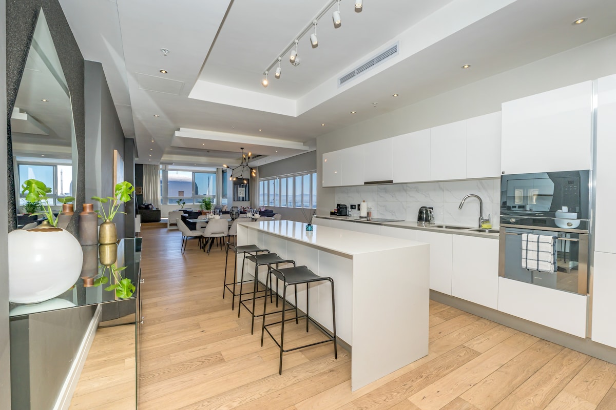 In Cape Town's vibrant de Waterkant, you will find this high rise Penthouse apartment offering a private rooftop terrace with the best views in Cape Town. This city Oasis is surrounded by top class restaurants and cafes within walking distance and only 5 minutes from the V&A Waterfront and Green point Stadium. Amenities in the building include private parking, a Planet Fitness gym and 24h security desk. The apartment is secure and secluded, giving you the privacy to unwind on a getaway.