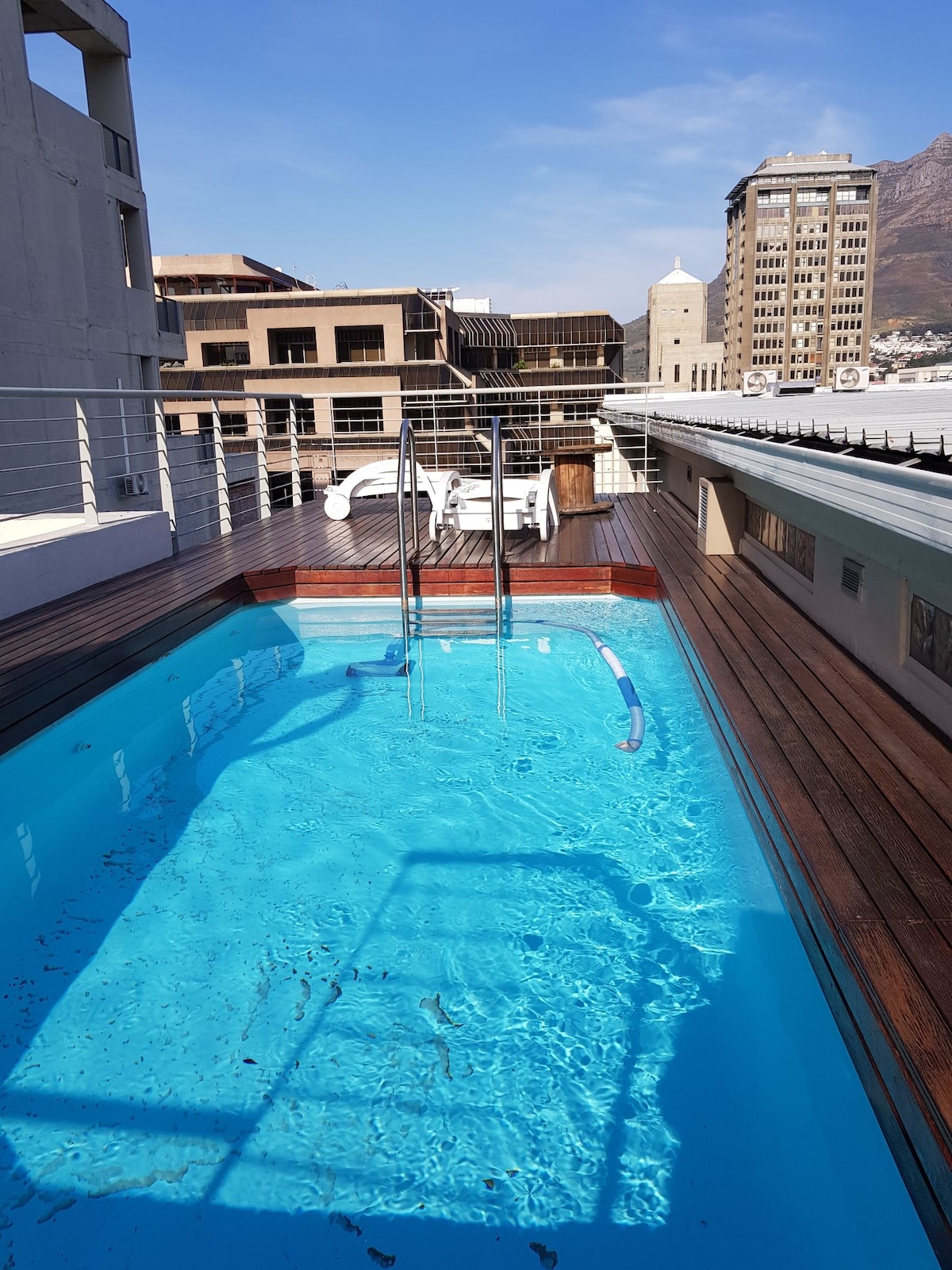 Situated in the City Centre within walking distances to popular restaurants and an 8 minute Uber to the popular V&A Waterfront. The apartment has free WiFi and a balcony to catch a breathe of fresh air. You will experience stunning views of Cape Town from the rooftop which has a swimming pool with a braai area for those relaxing summer nights. The apartment is self catering with cooking facilities, fridge, aircon, flat screen TV, 2 seater recliner and a workspace or make up area (you decide).
