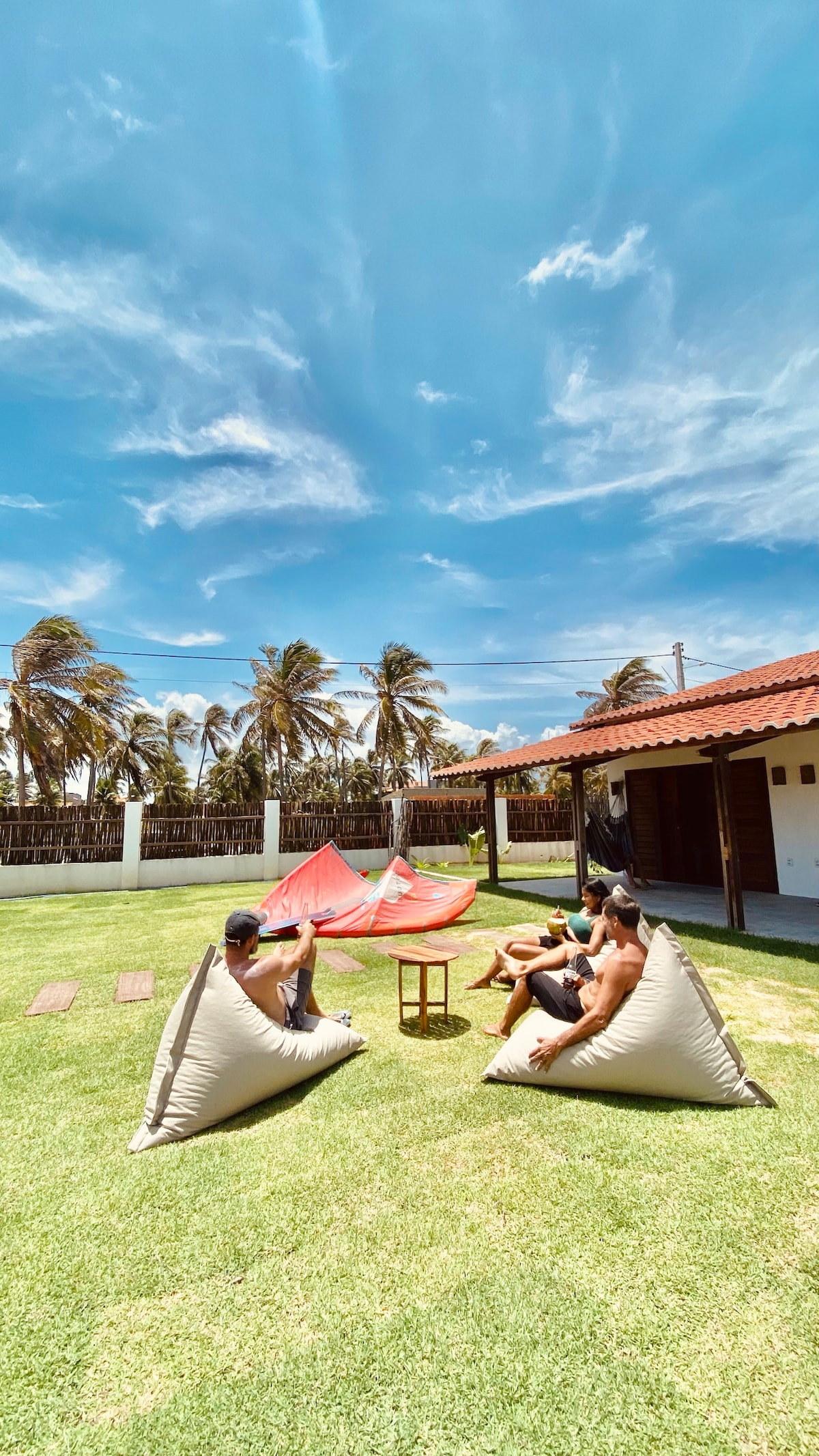A Vila Alizius é uma experiencia para quem deseja desacelerar e se recarregar as energias. Dois bangalôs exclusivos, imerso na natureza, há 500m do mar, completos, com cozinha prática, ideal para curta e longa temporada. O jardim amplo e compartilhado entre os bangalôs, se tornou um espaço de integraçao e amizades para as crianças e adultos, ali é possivel lavar os kites e equipamentos, brincar na grama, tomar sol e ver as estrelas a noite.