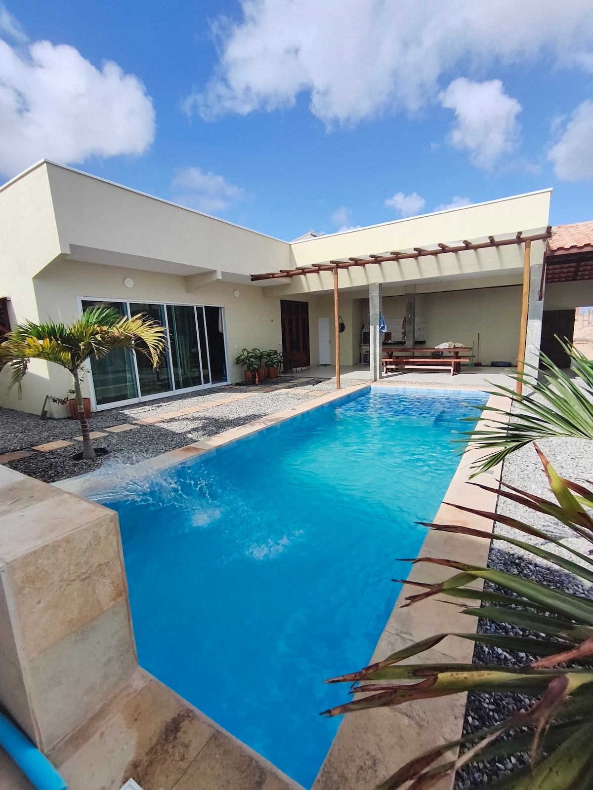 A casa está localizada em Canoa Quebrada, na Nova Estrada que liga a Cidade de Aracati a uma das melhores praias do Nordeste. Ela fica a 3min de carro da (Broadway) e a 800m da praia, e tbem das melhores Barracas de Canoa Quebrada. É o local perfeito para relaxar e desfrutar do pôr do sol. - Ar-condicionado; - Quarto e cozinha integrados; - 02 banheiros; - Cozinha equipada com utensílios e eletrodomésticos; - Piscina Grande com prainha para crianças; - Área de churrasco com grelha e utensílios