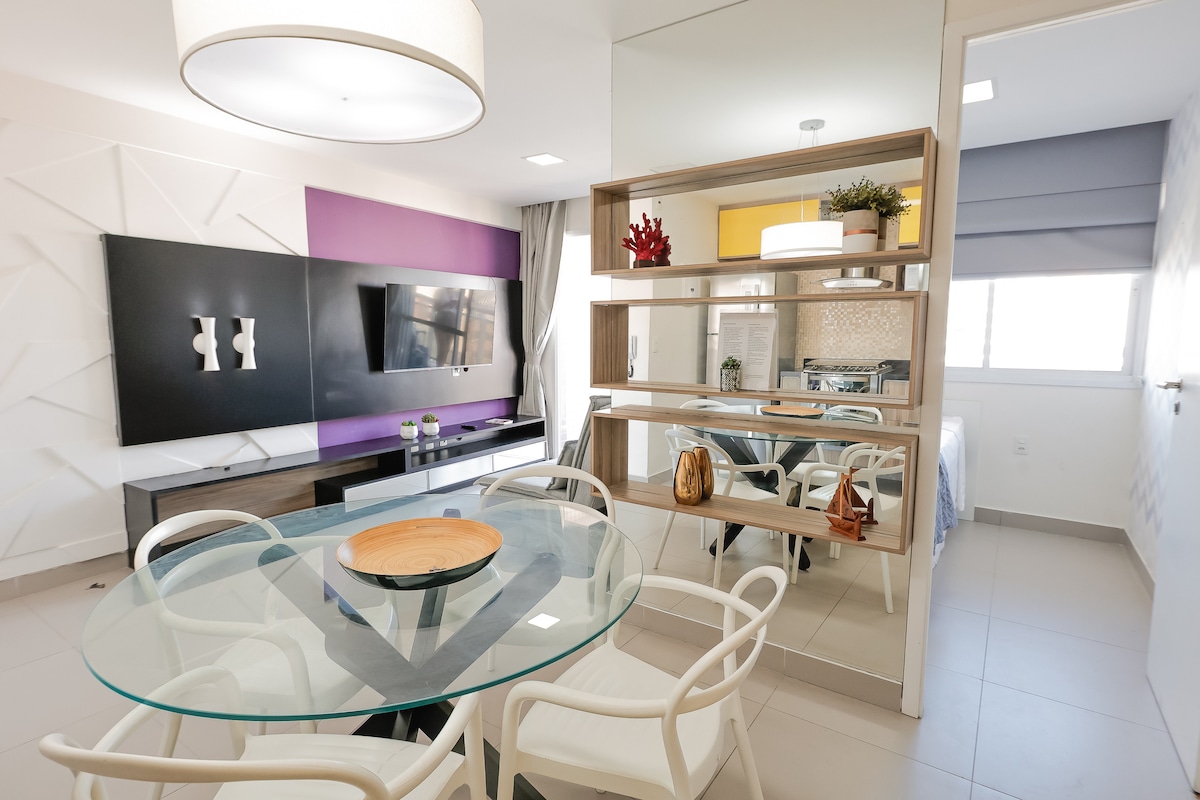 Apto novo pé na areia c/ vista p/ o mar, 5 min do Beach Park. 2 quartos (c/ tv, camas/Queen e casal, ar cond. e 2 banheiros c/ água quente). Cozinha americana c/ cooktop e forno, geladeira. Sala de estar c/ sofá e Smart TV. Varanda c/ cortina de vidro, vista mar, rede de proteção, wi-fi, blackout nas cortinas. Piscina e sauna c/ saída p/ o mar, churrasqueira, academia, brinquedoteca, sala de jogos, quadra de volêi, bangalôs, elevadores e estacionamento grátis. Aceitamos animais pequeno porte.