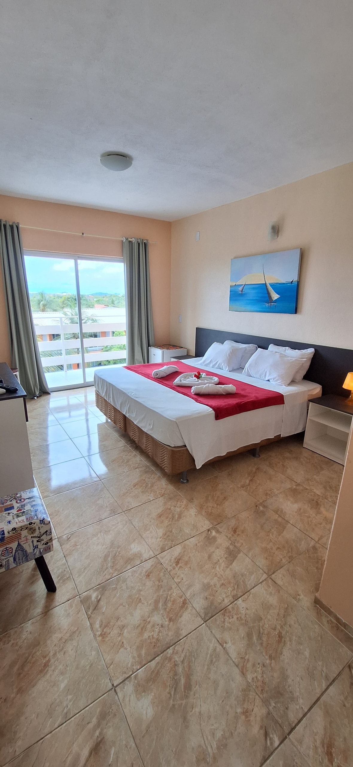 Descanse com conforto em uma acomodação térrea super prática, perfeita para casais ou pequenas famílias que querem curtir dias incríveis em Porto das Dunas. Estamos próximos à praia e bem pertinho do Beach Park! O espaço conta com: Smart TV 32” e Wi-Fi gratuito; Frigobar, ar-condicionado e banheiro privativo (com secador de cabelo em algumas unidades); Fácil acesso à piscina e áreas comuns do hotel Café da manhã não incluído