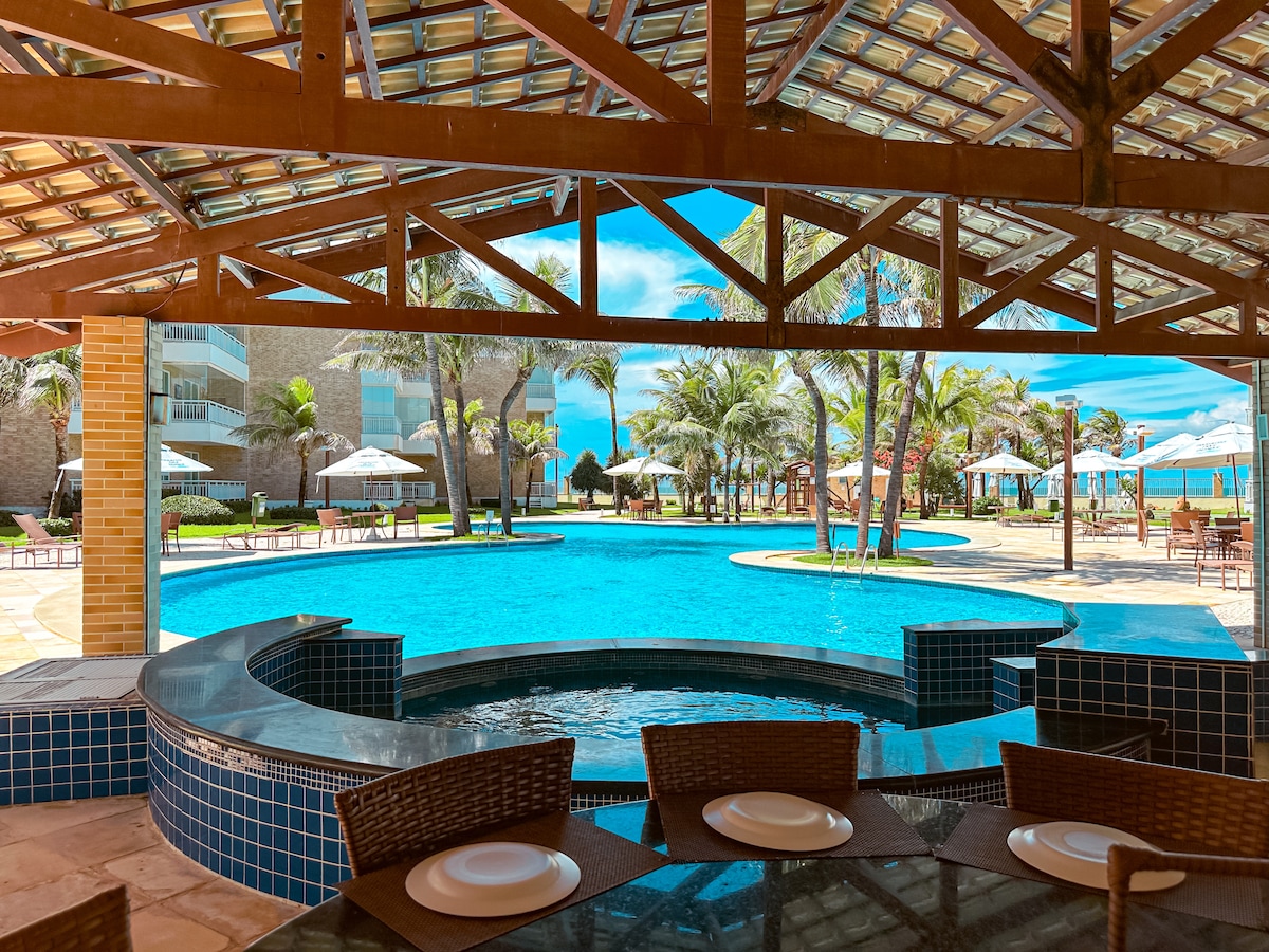 Resort: LOCALIZADO EM FRENTE A PRAIA! ENERGIA INCLUSA NA DIÁRIA TELA/REDE DE PROTEÇÃO PURIFICADOR DE ÁGUA-NÃO TROCA GARRAFÃO Apto Ar Cond. 115m/3 Suítes: CAMA: 1 KING, 1 Queen, 2 Solteiros e 3 Bicamas/Área de Trabalho/MÁQ LAVAR ROUPA Área Comum: 2 Complexos piscinas/restaurantes Beach Tênis/Vôley/4 Quadras de tênis/2 Poliesportivas/Campo de futbol/futmesa/Campos de golf/Caiaque/2 Saunas/Jacuzzi/Espaço kids/Parquinho/Sinuca/Enfermaria/Academia 5 min de carro Beach Park/Supermercados/Drogarias