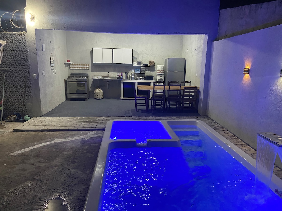 Ideal para viagens rápidas. Ótimo lugar com espaço para cozinhar e descansar. Perto de supermercado e churrascaria. Local silencioso e pouco movimentado. Ar condicionado Geladeira 1 cama casal + 1 colchão casal Fogão 4 bocas Banheiro Sala de estar