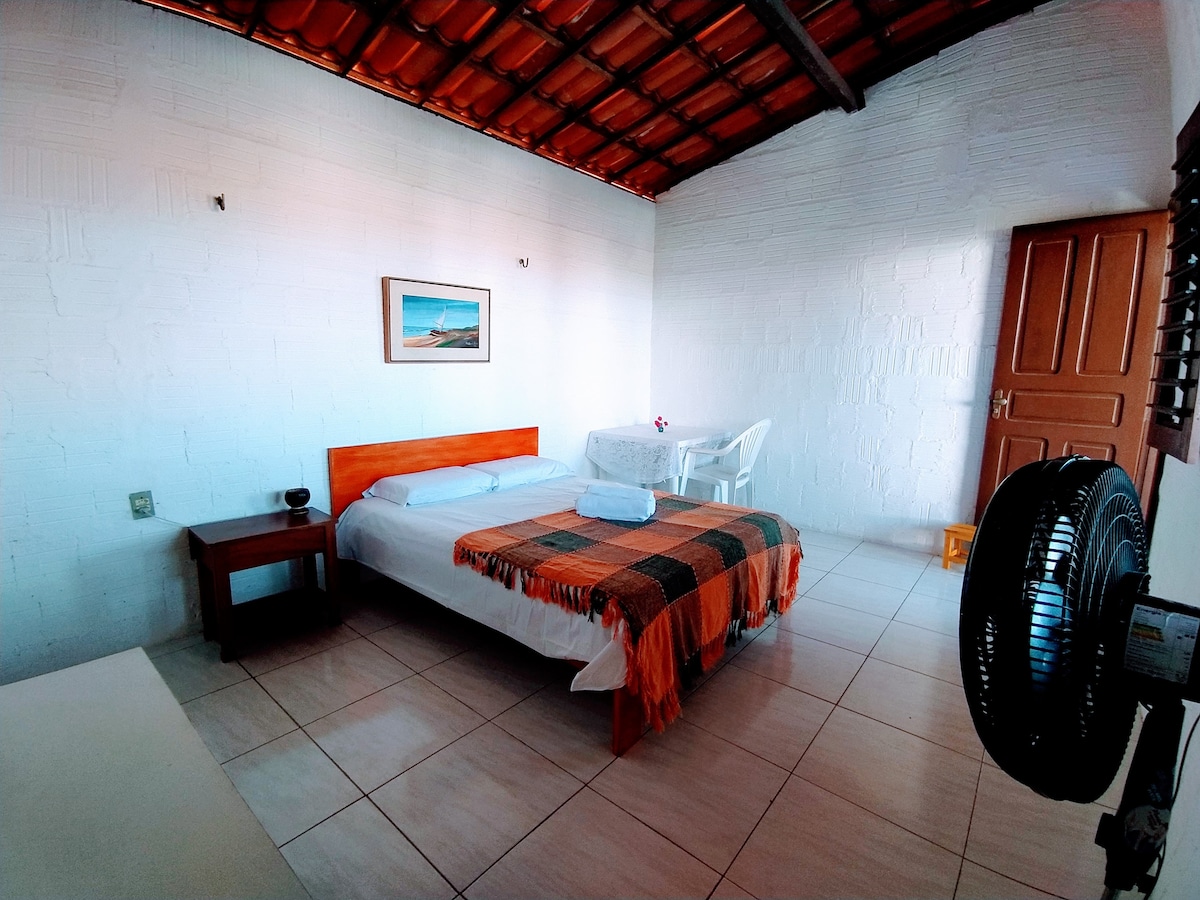 Local descolado com quarto privativo,ventilador, cama, banheiro privativo e cozinha com utensílios básicos (talheres, panelas, pratos, liquidificador). Localizado à três quadras da praia, próximo às melhores barracas de praia (Vira Verão e Crocobeach). Estacionamento interno. Obs. Tem opçao de ar condicionado, com taxa de 30 reais o dia.