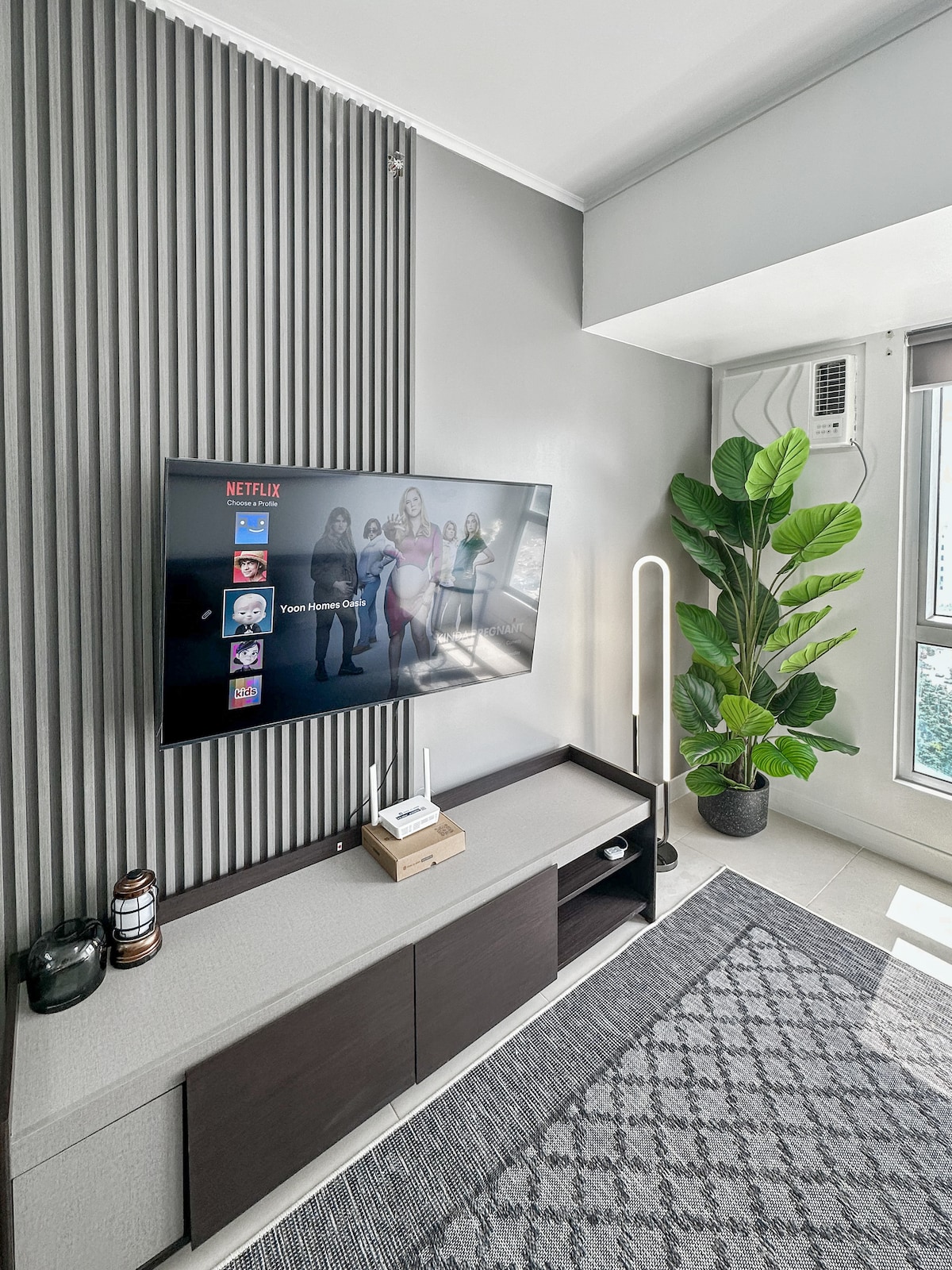 55-inch television with Netflix and Disney+ This unique accommodation is close to all sights and amenities making it easy to plan your visit. Magnificent swimming pool on the rooftop of the building on the 28th floor. Swimming pool is opened 7 days a week, free of charge, for guests only. Beautiful gym on the ground floor, free for the guests. 3 minutes walk from the best shopping center "Ayala center" Building name is "Calyx Residences"