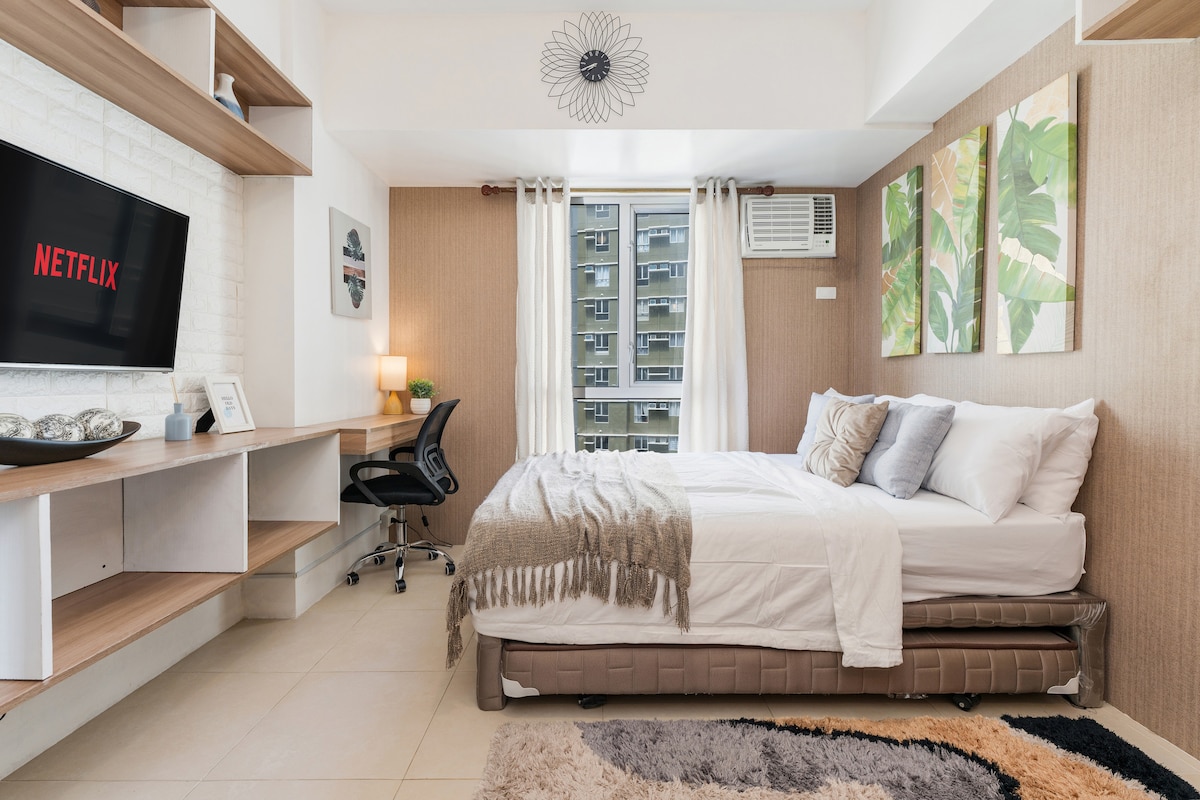 Stay at this Wabi-Sabi studio on the 30th floor of Horizons 101 in central Cebu City. With earthy tones, comfy linens, and warm wood accents, it’s got the perfect relaxing ambiance. You’ll be close to Fuente Osmena and have easy access to transportation. Ideal for travelers, couples on a getaway, or friends out to explore the city. Book your stay in this stylish studio today!