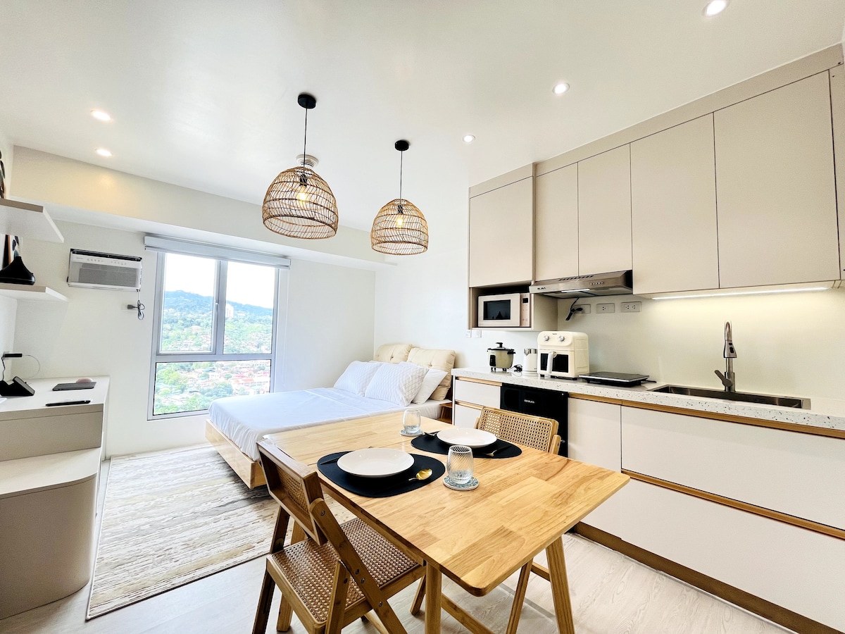 A thoughtfully furnished studio condo conveniently located nearby Cebu's major commercial & business districts - IT Park, Ayala Center & BanTal Corridor. So whether you're visiting Cebu for business or leisure, you're sure to be accessible to your destinations. Take comfort in our homy condo with a great view of the sunrise & the fairways of Cebu Golf Club. Connected to fiber internet, you can still work on-the-go or binge on your favorite Netflix. It will be our pleasure to host you! :)