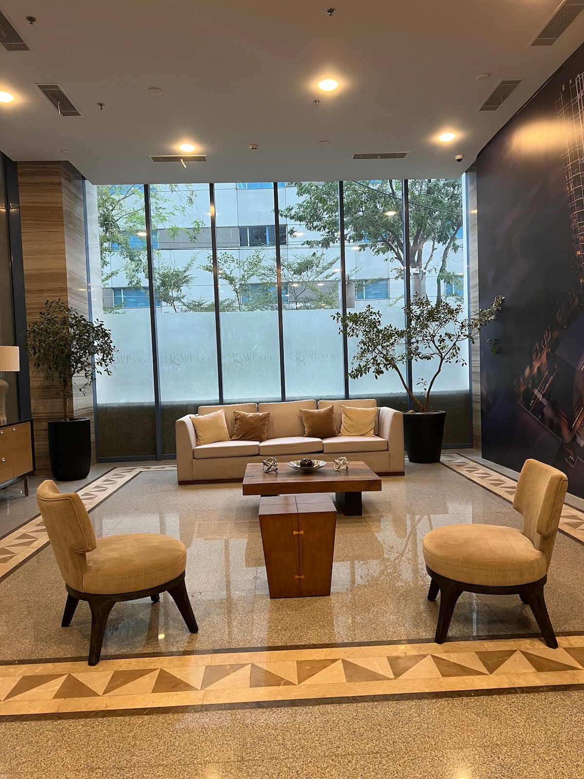 Indulge in luxury at our 1BR apartment suite. Unwind in a spacious space featuring a plush king-size bed, well-equipped kitchen, and a rejuvenating bathroom with a bathtub. Revel in panoramic views from your private haven. Enhance productivity with a dedicated working space with high speed WIFI. Enjoy exclusive access to building’s amenities - gym, pool, business center and ample parking. Our centrally located gem offers convenience and comfort, allowing you to explore the city effortlessly.