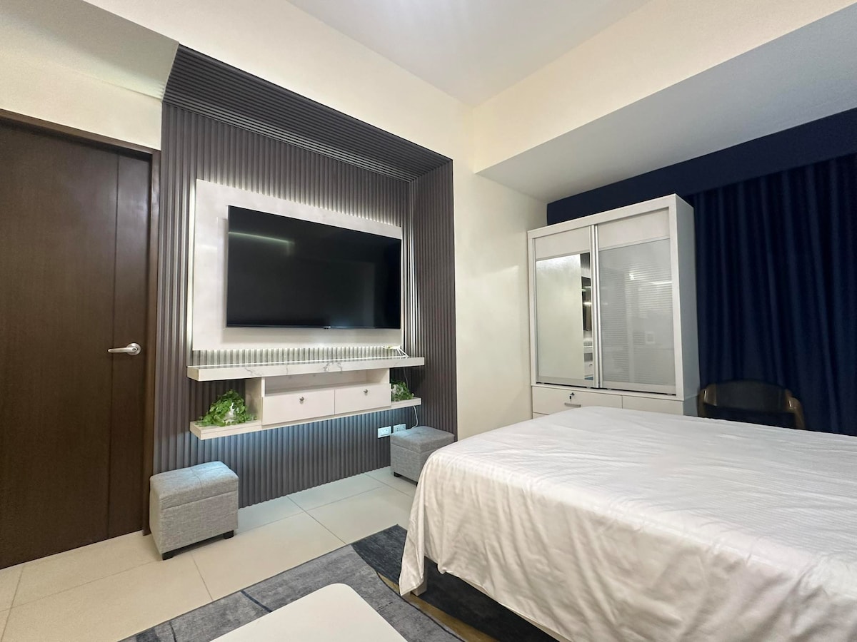 Welcome to your ideal retreat for both Family trips and Business Trips, nestled in the vibrant heart of IT Park, Cebu City, Philippines! Step into relaxation and luxury in this expansive 54 sq.m. one-bedroom haven Enjoy this unit and the many amenities: -High-Speed Wifi -Smart TV with NETFLIX -Cozy and spacious Living Room -Dining table (6 seaters) -Fully Equipped Kitchen with cooking essentials -Cozy Bedroom with Queen Size Bed and 1extra foam mattress -Hot & Cold Shower -Swimming Pool, Gym