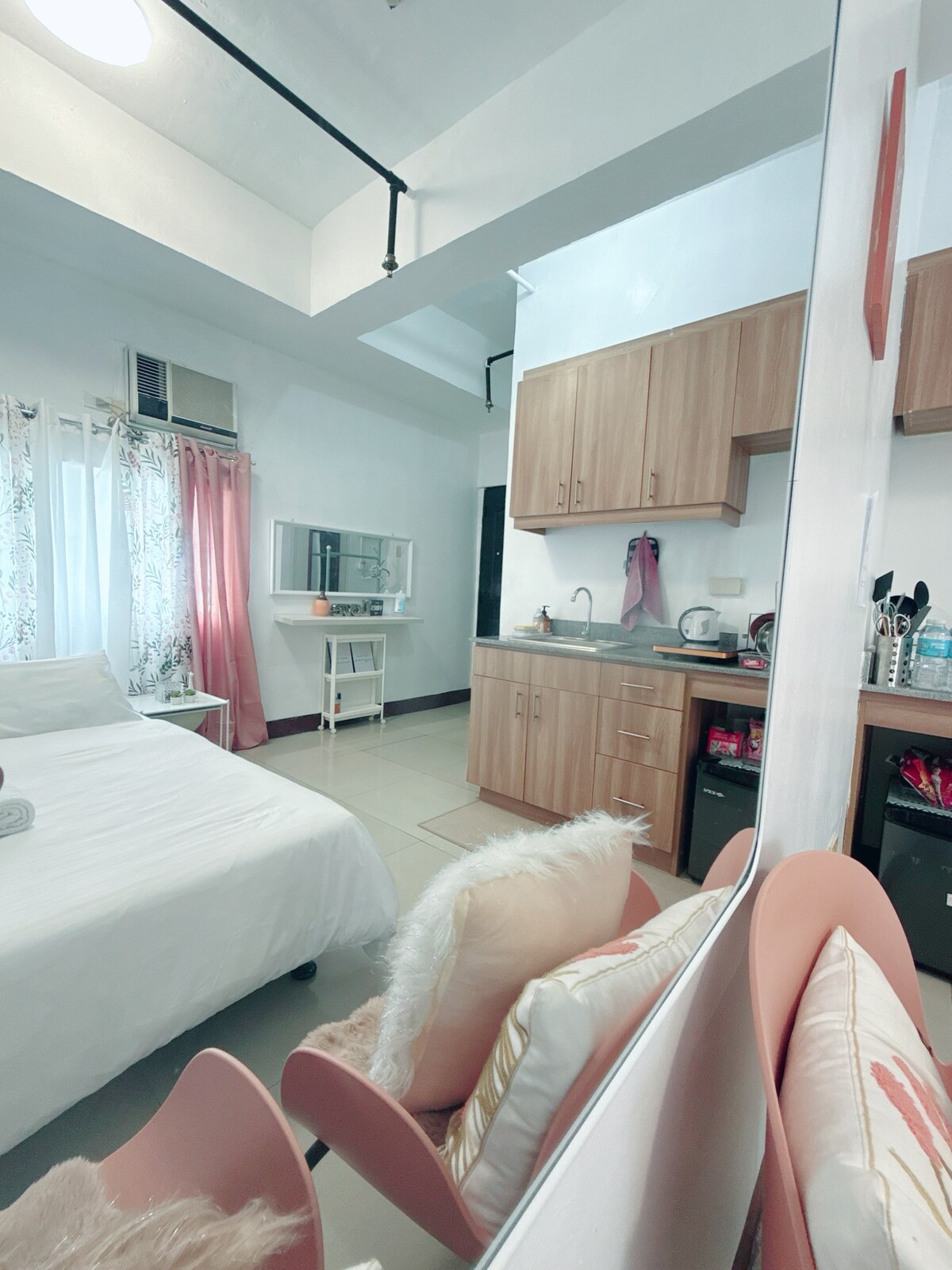 This stylish studio condo unit is located on the 21st floor of Sunvida Tower across from the famous Sm Mall of Cebu. It’s within 5 min drive to Ayala Center and Cebu IT Park. Coffee shop, laundry, nail salon and a local restaurant is available on the ground floor of the building. Airport is within 20min drive and seaports is 5 min away. This is the perfect location in Cebu City whether you’re just visiting, on a business meeting or just wanted a staycation.