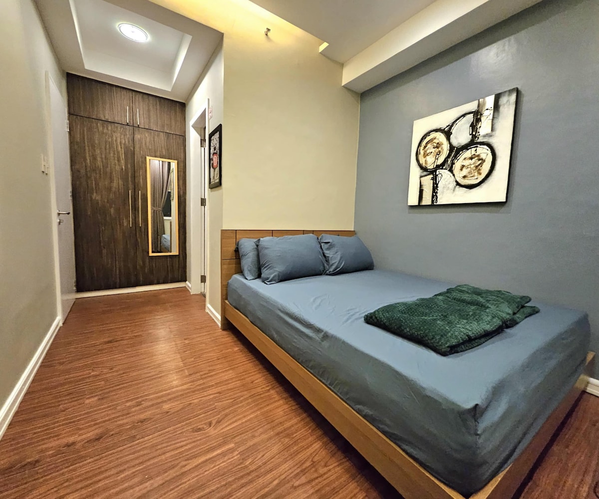 Fully furnished studio type Condo in the I.T. Park Cebu City, that has been professionally designed for the comfort of the guest. Equipped with full kitchen with complete utensils and dishes, Electric stove,aircon,water heater, iron,smart TV,refrigerator,upto 50mbps internet speed, microwave, rice cooker and water kettle. The bldg. is within 5 minutes walk to Ayala Mall Central Block. There’s a wide array of restaurants to choose from. It is easy to book Grab or taxi to get your destination.