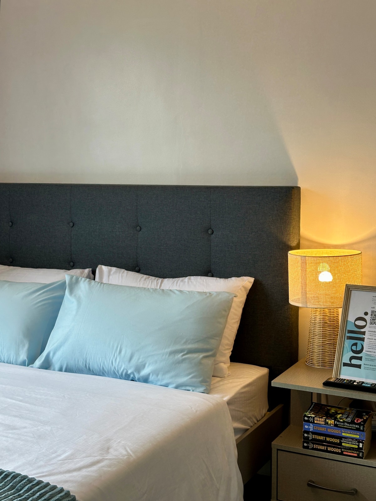 Enjoy a stylish experience at this centrally located place. Relax in this entirely cozy, modern and vibrant condo unit that is conveniently located near Mactan International Airport. Where it is close to everything like restaurants, coffee shops, laundry shops, malls and supermarket. - 3-5 minutes away from Mactan Airport - High-Speed Internet up to 200 Mbps - 65 inches TV with free Netflix - 1 Bedroom w/ 1 queen-size bed & 1 Foldable double size bed - Washing Machine -Fully equipped kitchen