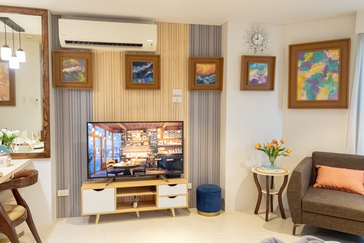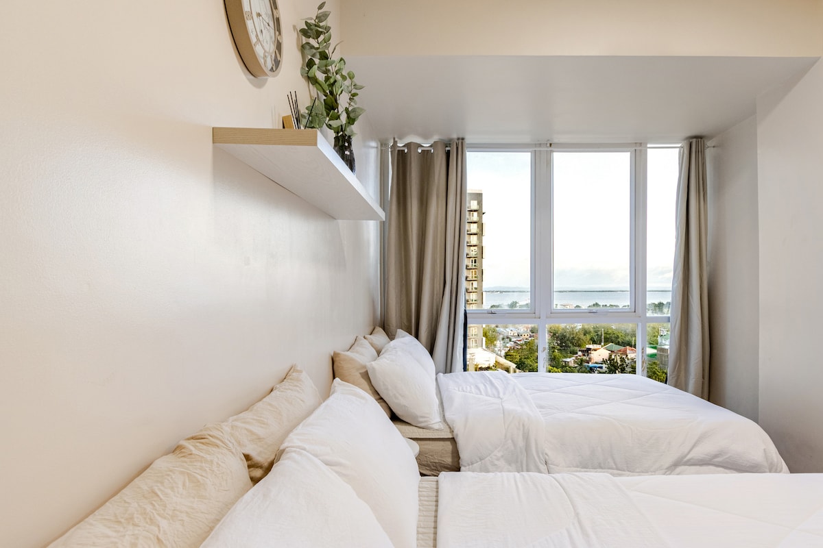 Your home away from home where the gentle breeze meets the soft sands, the sands meet the sparkling sea, and the sea meets the vast ocean under the warm embrace of the sun. Enjoy comfort and tranquility in our 1-bedroom corner unit with a queen-sized bed, a sofa bed for the extra 2 guests, balcony with a day bed to enjoy the breathtaking view. Located in Tambuli Seaside Living Tower D, just 12km from Mactan International Airport. *Minimum of 2 nights