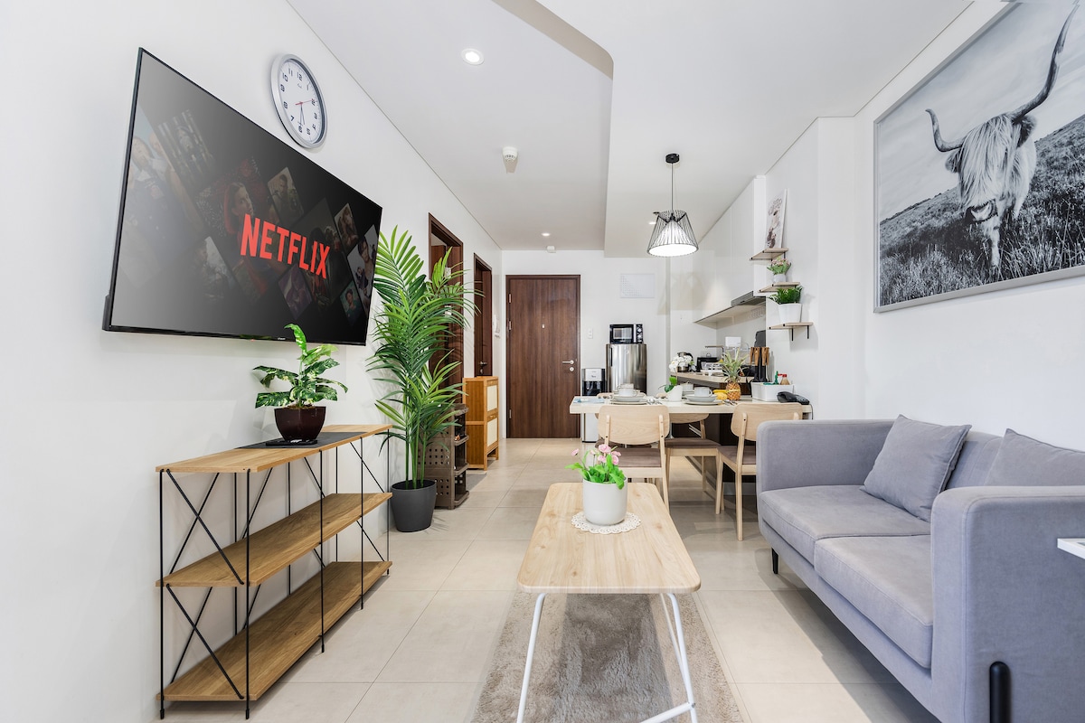 47 sqm – separate Bedroom 9th floor Step into the comfort of this gorgeous apartment nestled in the luxurious oceanfront of Tambuli . Explore resort restaurants, pools, private beaches, exciting attractions and entertaining amenities and then retreat to the lovely condo, whose stylish and convenient design will satisfy your every need. ✔ Comfortable Queen Bed + 2 Sofa Beds ✔ Kitchenette ✔ Smart TV ✔ High-Speed Wi-Fi ✔ Paid Facilities & Services