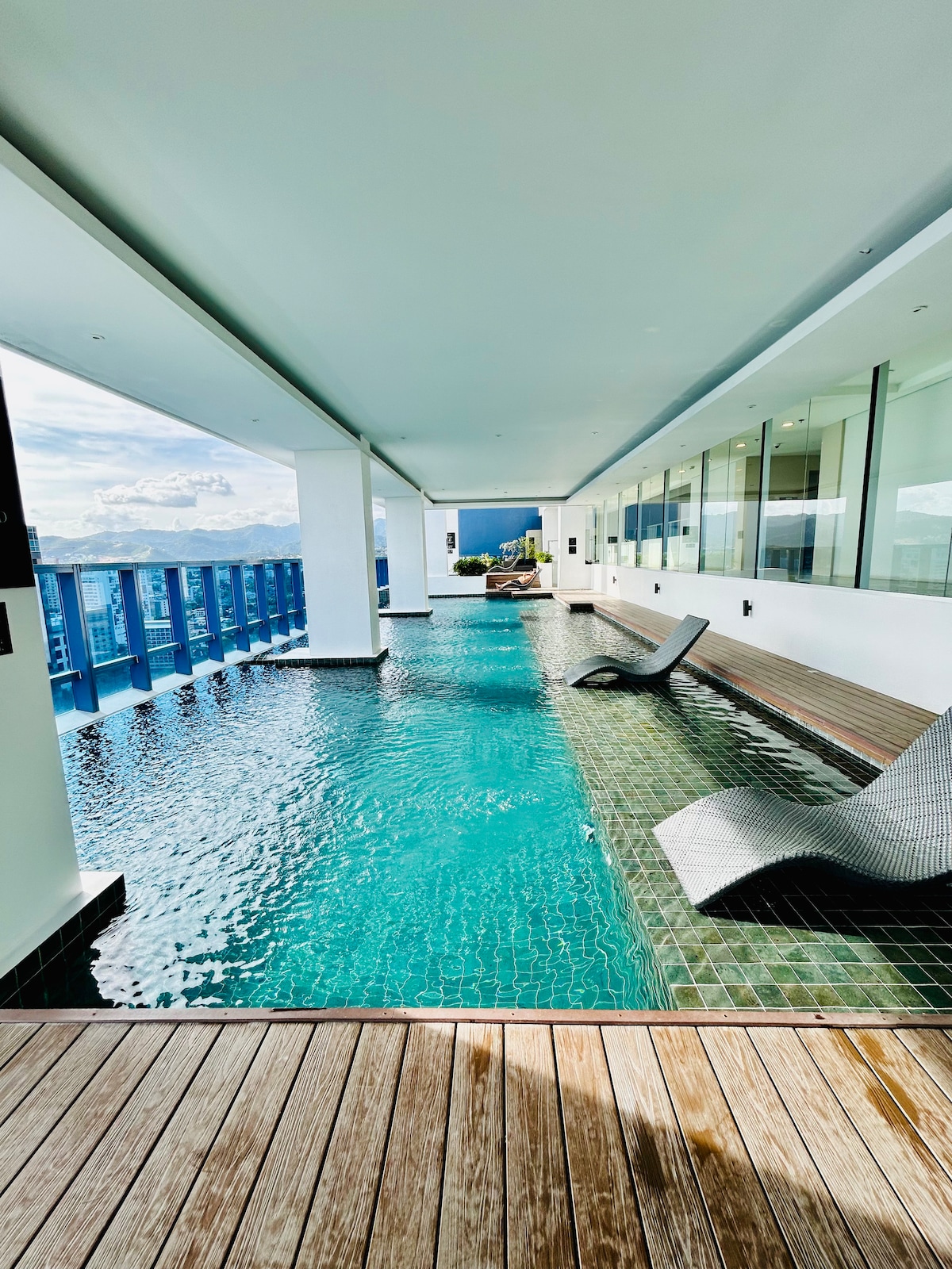 Experience high-end living in this prime 22nd-floor luxury studio at Park Avenue 38, IT Park, offering elegant city and bay views. Good for four people. Enjoy your private cinema projector, plush sofa bed, indoor plants, and germ-killing AC. Features hot & cold shower, full cooking facilities, and daily housekeeping. 7-Eleven is at the entrance, surrounded by the best 24/7 coffee shops and upscale restaurants.