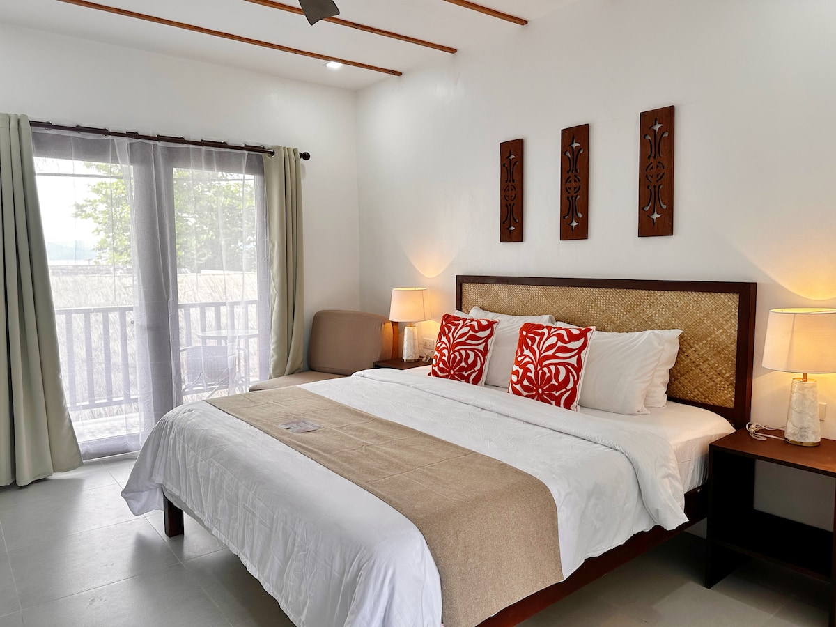 Cozy and comfy studio w/small kitchen in a charming tropical setting, with a beautiful pool view and private veranda. Includes queen-sized bed, flat-screen TV, hot/cold shower, air conditioner, fast wireless Internet. Max Guests: 3 Quiet, private, and comfortable. Located approximately 2 minutes (by motorbike) to 10 minutes (by foot) from vibrant Alona Beach in Panglao Island, Bohol. Tour bookings and motorbike (scooter) rentals are available at the reception desk.