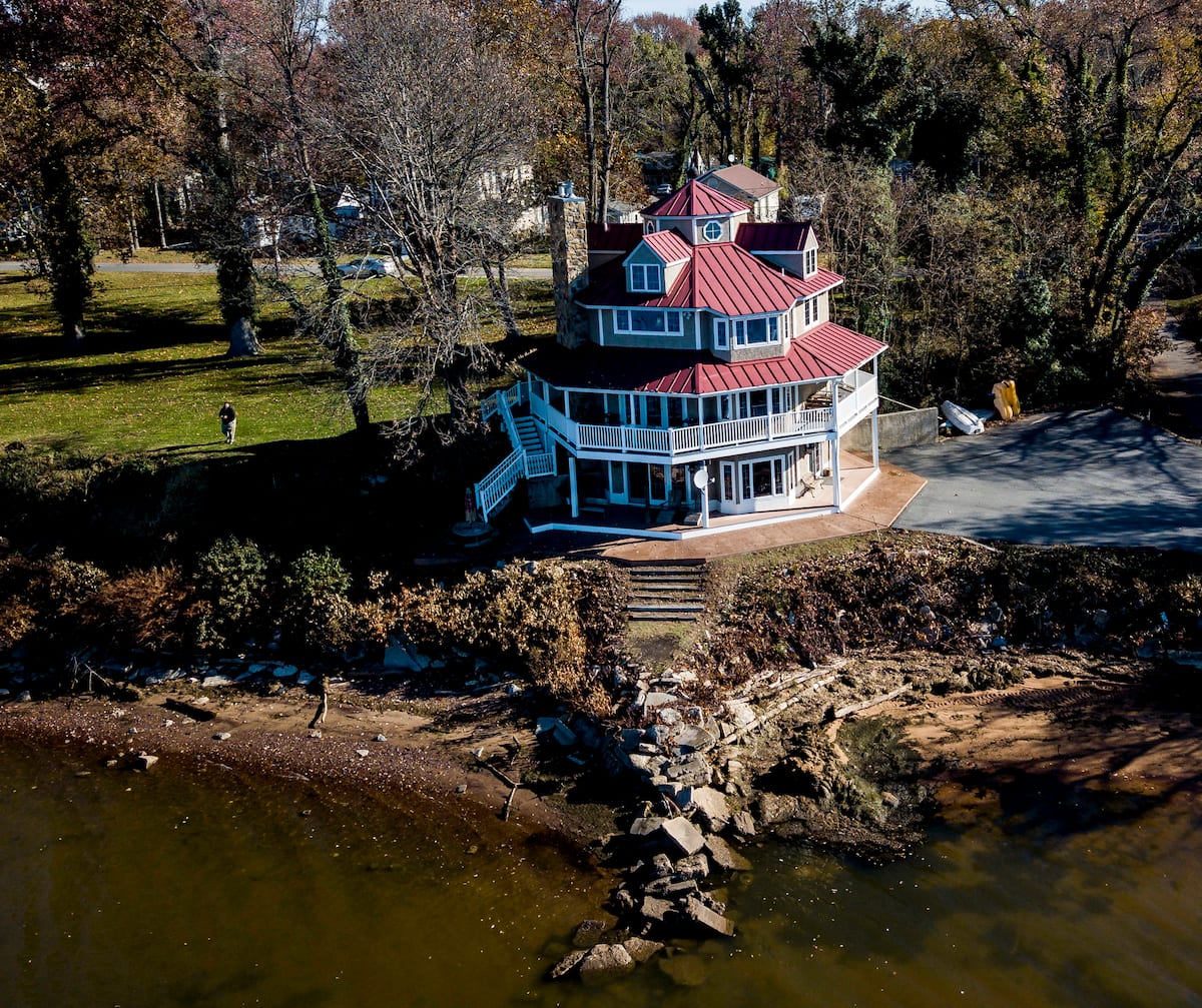 Recently updated unique lighthouse replica on the northern tip of the Chesapeake Bay. 4 bedrooms & 2 sleeping nooks, the house can sleep up to 14 in 6 beds (3 kings, 1 queen, 2 doubles) and one queen sofa bed. 4 bathrooms - 2 ensuite. Two living rooms, fully equipped kitchen, family style dining area. Wrap around decks on multiple floors. Firepit, Adirondack seating, lawn games for enjoying 1.5 acres with water views. Community sandy beach across the street for strolling & relaxing.