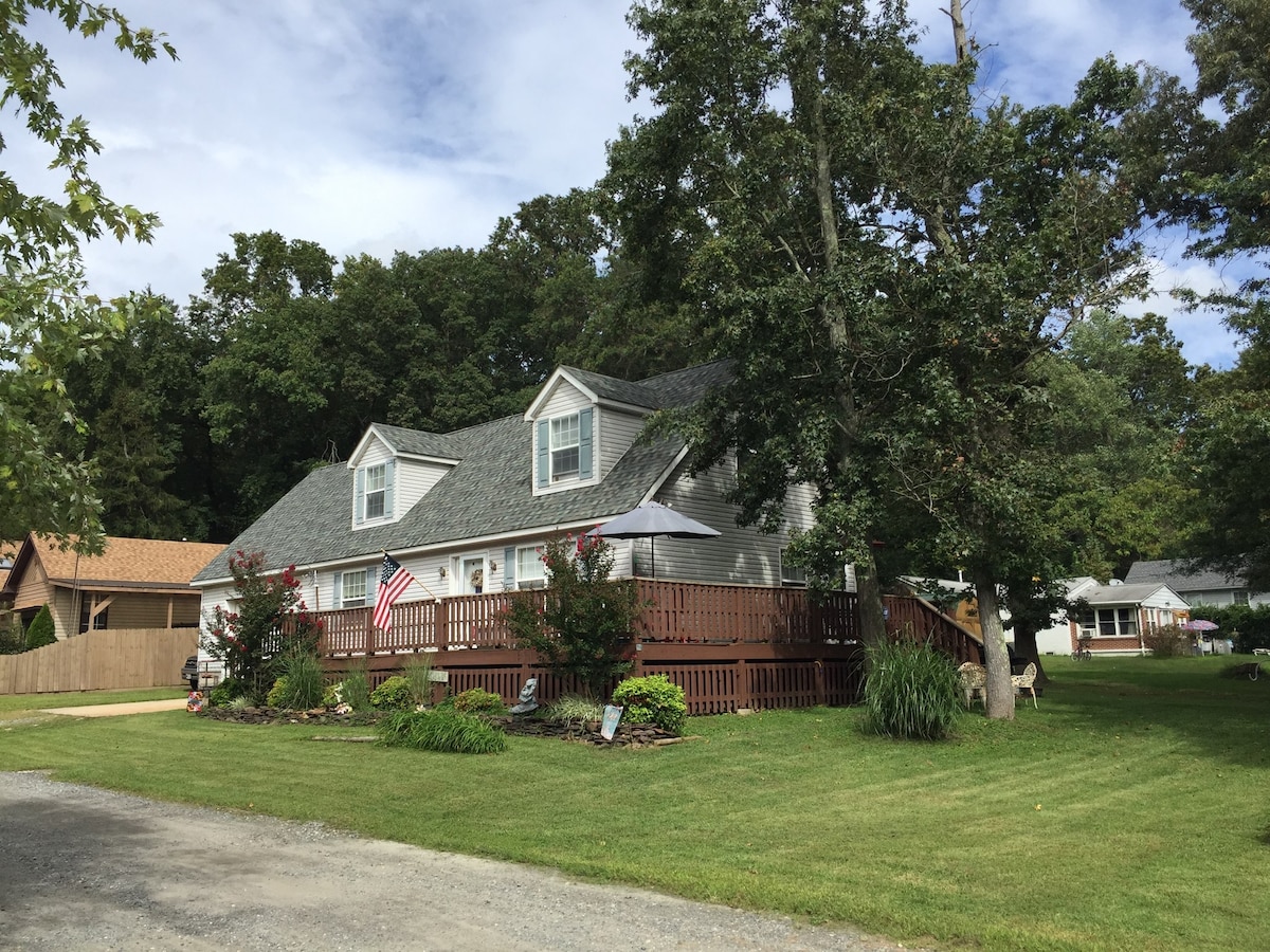 Peaceful, cozy modern cottage with many amenities in a water-oriented community along the Bohemia River. Just minutes from Chesapeake City and located across the street from the water. Our house is perfect for family vacations, tranquil retreats, girl/guy getaways, weddings, wedding guests. Two queen master BR’s w/private baths on the first floor, second floor has one larger BR w/twins and smaller BR w/daybed +trundle and shared bathroom.