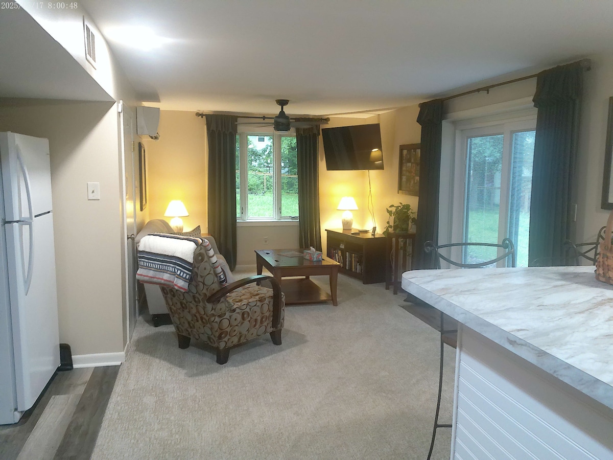 Enjoy this comfortable, relaxing guest suite with a kitchenette in a desirable and quiet neighborhood in Newark. Close to Downtown and Main St, this is a great base to explore the area and the University. We are less than 3 miles from the University and Main Street. The suite is tastefully furnished in a neighborhood with mature trees. It is totally private, with a separate entrance and a keypad for self check in. Parking is available in the driveway. Truly a serene getaway!