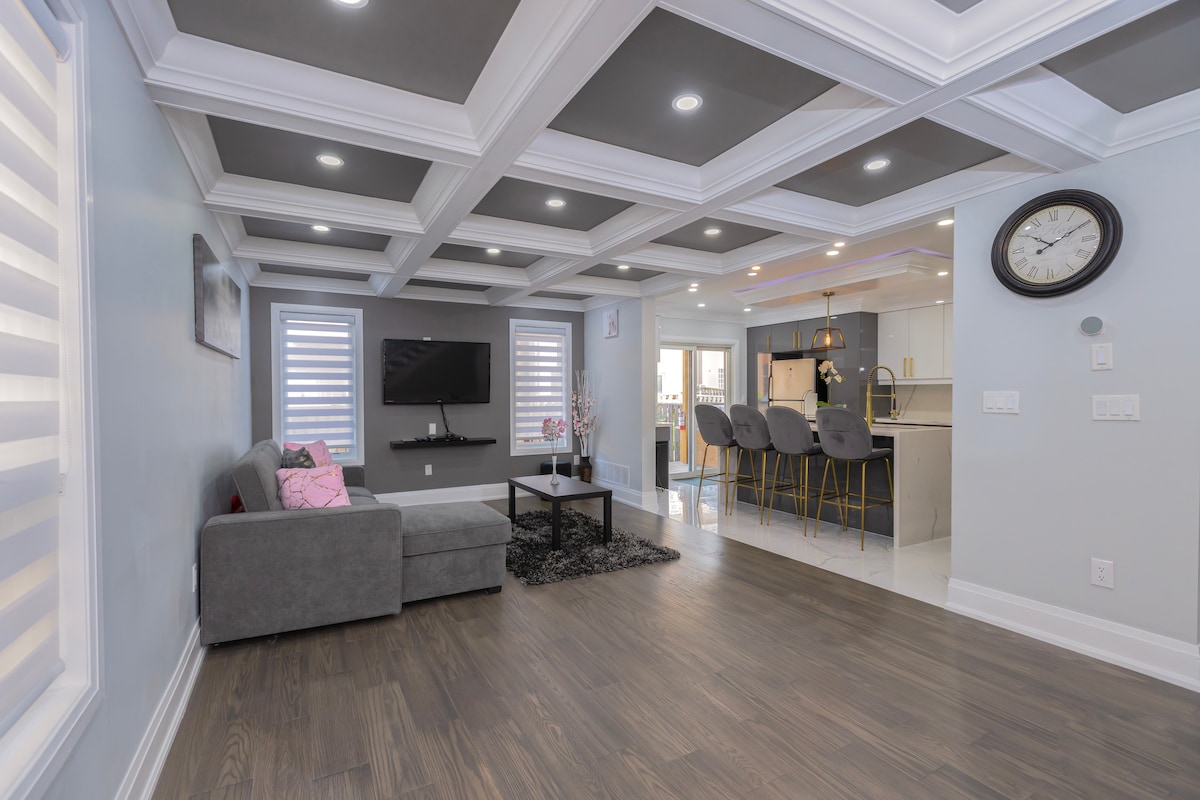 Welcome to your stylish urban retreat! This contemporary basement apartment is designed for comfort and convenience. Relax in the open-plan living space, featuring cozy seating and a smart TV. Enjoy a modern kitchen with stainless steel appliances, including a fridge, stove, microwave, and coffee maker. The private bedroom has a king-sized bed with premium linens and ample storage space. Situated in a vibrant neighborhood, you’ll find trendy cafes, shops, and parks just a short walk away.