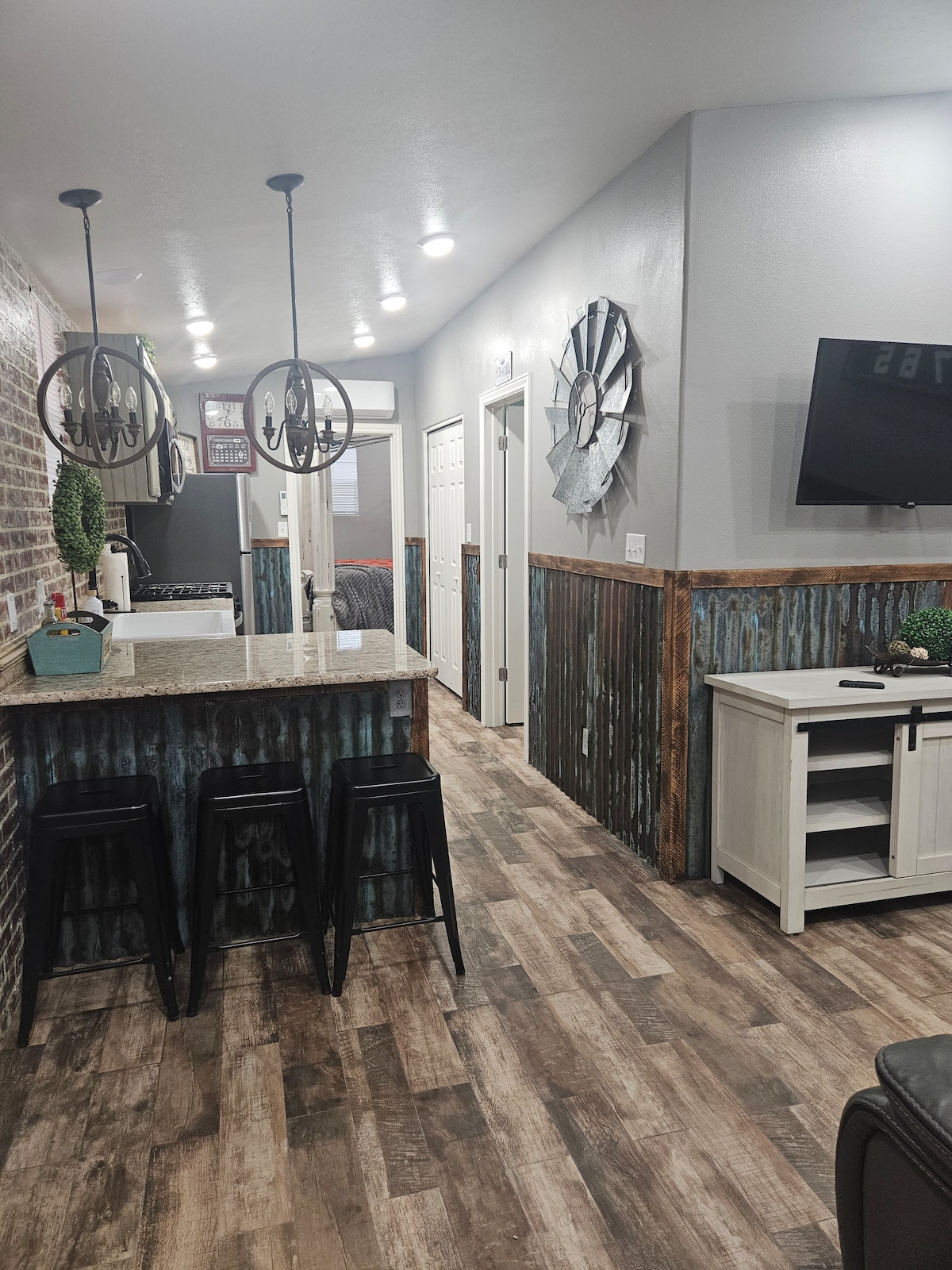 1 bedroom studio with kitchenette, WiFi, smart tv with Netflix (no local tv). Everything you need in a well-organized space. We are approximately 1 hr from both So. Utah national parks. This Airbnb home has a unique design. The room you are looking at is just like a hotel room. It is it’s own space. No sharing of the room or amenities. You unlock the entrance door with your code, enter a shared hallway just like at a hotel, and then enter your suite using your code on your door once again.nal
