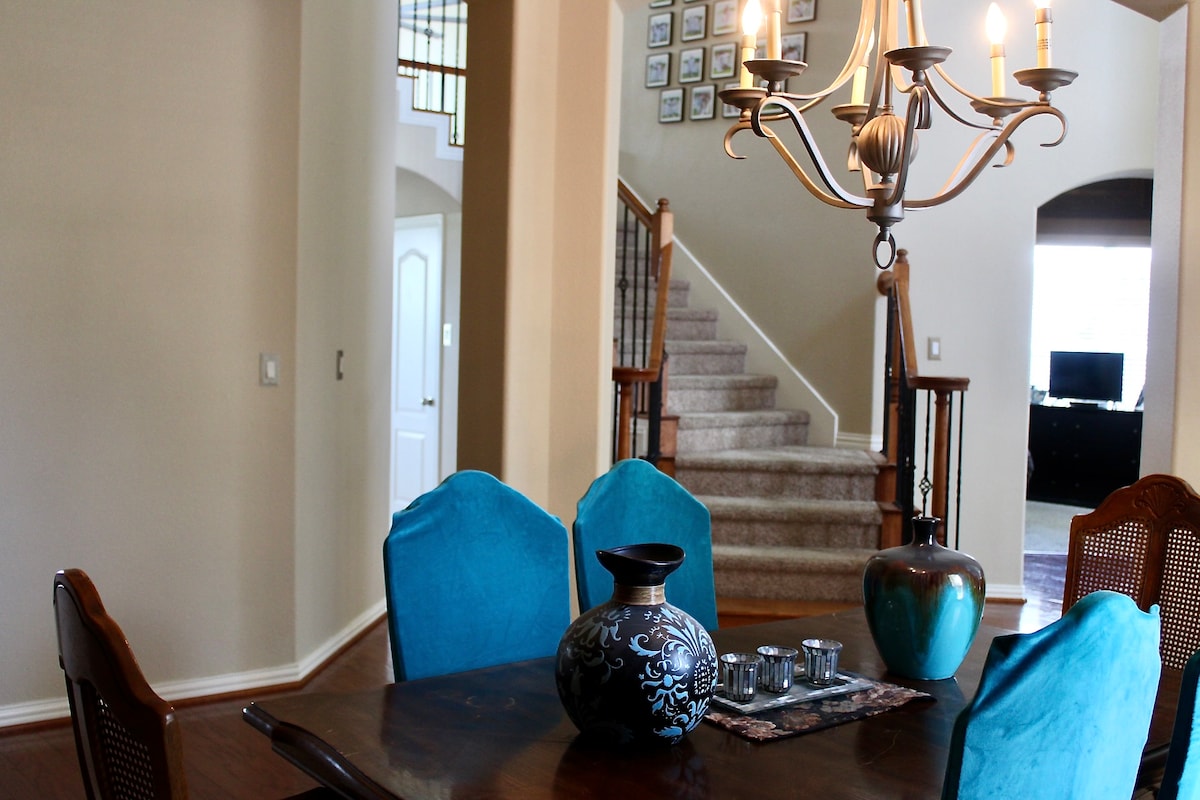 Our house is located in the peaceful and safe neighborhood min from Joe Pool Lake, prime location from DFW central. With such a big space 2900+ sqft, it’s definitely an ideal setup for a family vacation, weekend getaway or Long-Term Stays. You will find everything you need in our house: King Bed, Home Gym, Office, Movie Room, Games, well-equipped kitchens stocked with coffee machines and snacks, full washers & dryers with detergent. Book with us Now! Message for Long Term discount special