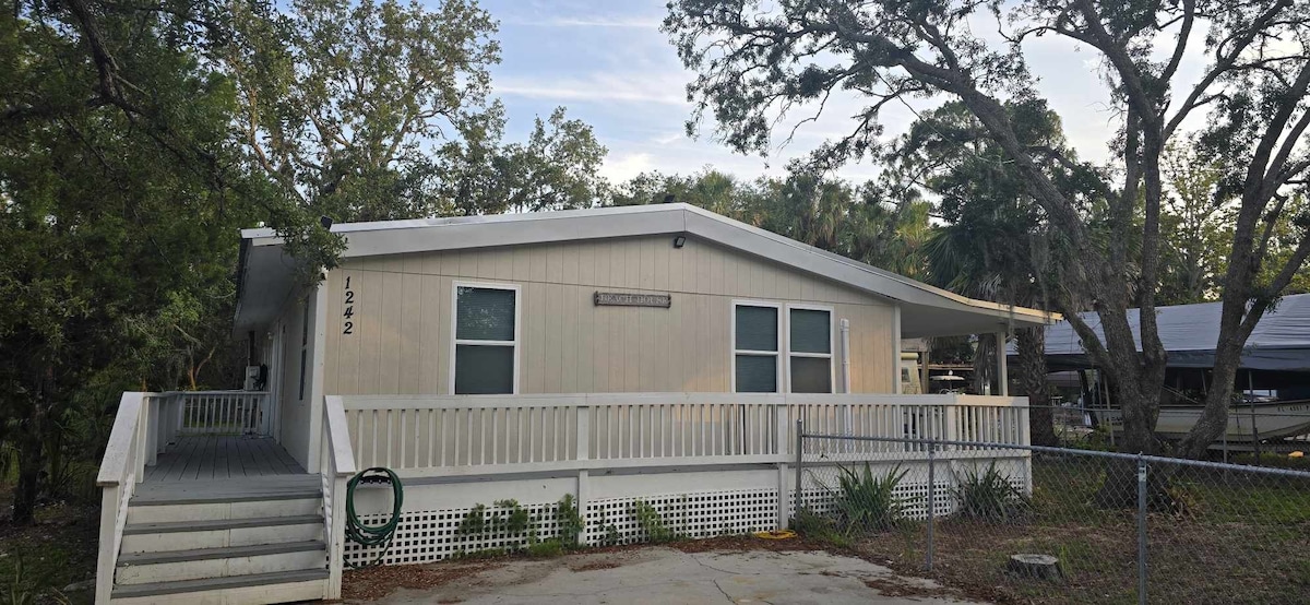 This one bedroom house offers one queen bed and a pull-out sofa to sleep a total of 4 people. The house offers a private boat ramp, docks, and quick access to the gulf. Includes Wifi, 2TVs, washer/drier, fire pit, grill, coffee maker. Enjoy sunsets, nature walks, and fishing from the docks. Clean, Clean, Clean! EVERYTHING is washed after each guest including sheets, towels, All blankets, bed comforters, and even decorative pillow cases. All handles, knobs, remotes and shower are sanitized.