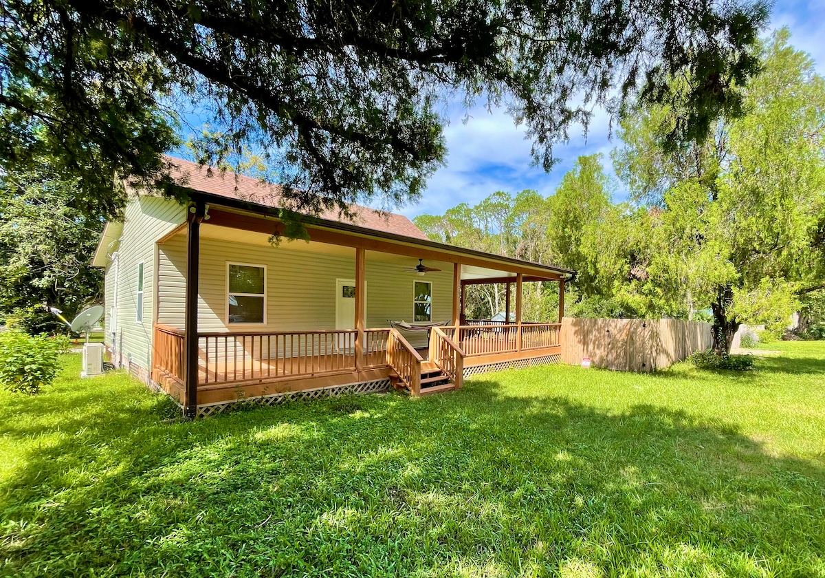 This cozy two-bedroom, one bath is a pet friendly property on a large private lot just north of Williston, Fl. Located just 25 minutes from Gainesville and 30 minutes from Ocala making it a prefect stay for events at the University of Florida, equestrian events at Horses in the Sun or diving at Devils Den. This hidden gem is also a great place for those just looking to relax away from the hustle and bustle. Enjoy this peaceful retreat nestled amongst the privacy of sprawling oaks.