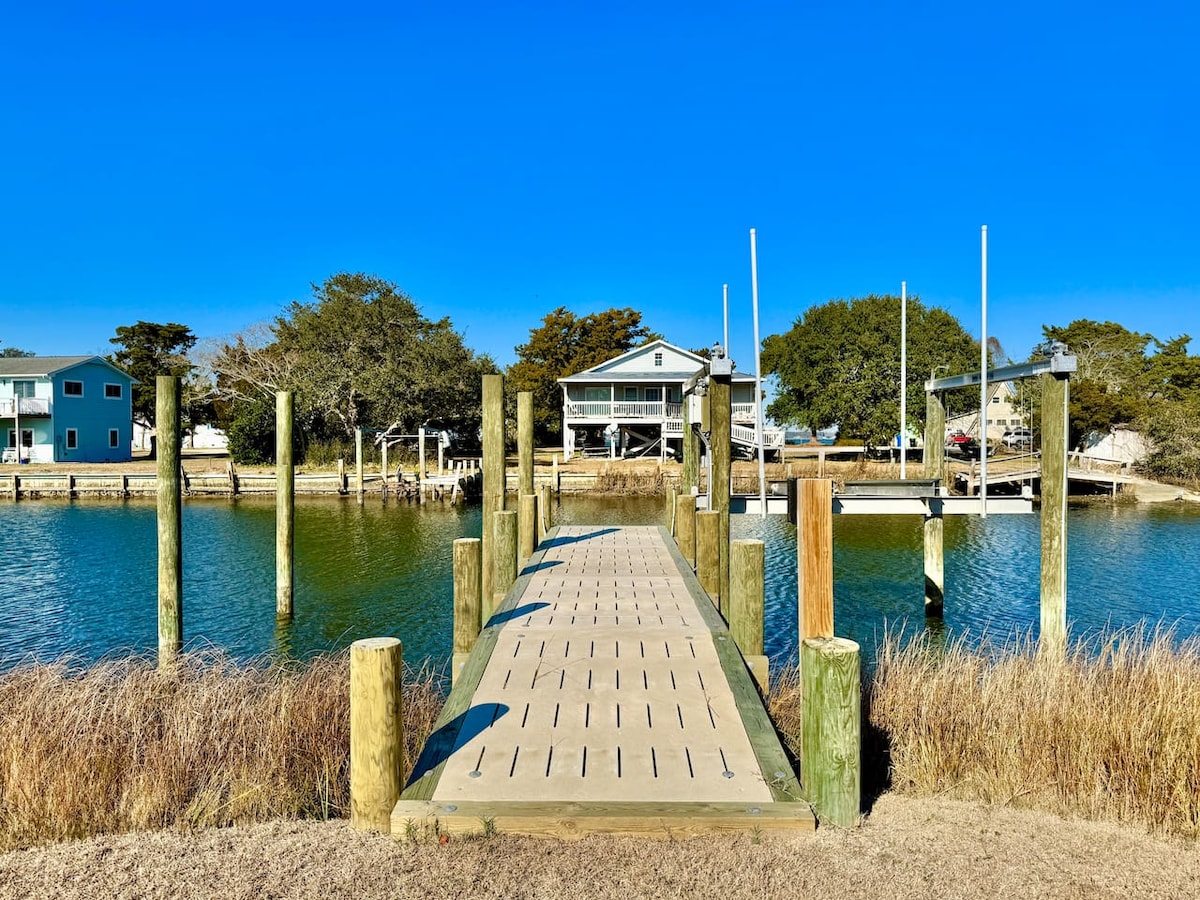 Paradise awaits! Enjoy the gorgeous sunrise over the Emerald Isle bridge, and the sunsets over the islands. Watch the dolphins play, fish, enjoy the refreshing saltwater, play on the swim-mat, kayak to the islands, endless adventure. In the evenings relax in the hot tub on the back porch. 2 miles to the beach. This is a peaceful and quiet home, the most noise you will hear are the boats going by. The water is steps away from the screened in front porch. Bring your boat and tie it to the dock.