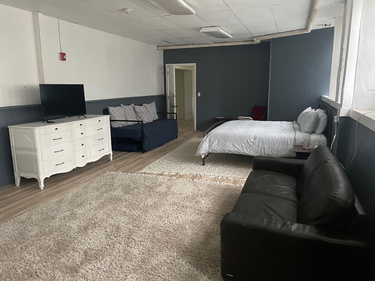 Welcome to our BoHo Studio! One block from Sandusky Bay waterfront, The Montgomery, built in the late 1800's, is located in heart of Sandusky's downtown historic district. The Boho Studio @ The Montgomery is cozy space with an eclectic artsy vibe. This space is outfitted with meditation pillows, games, vinyl record player. The Montgomery has an outdoor community courtyard and literally steps away from a variety of restaurants, shopping, activities, and culture.