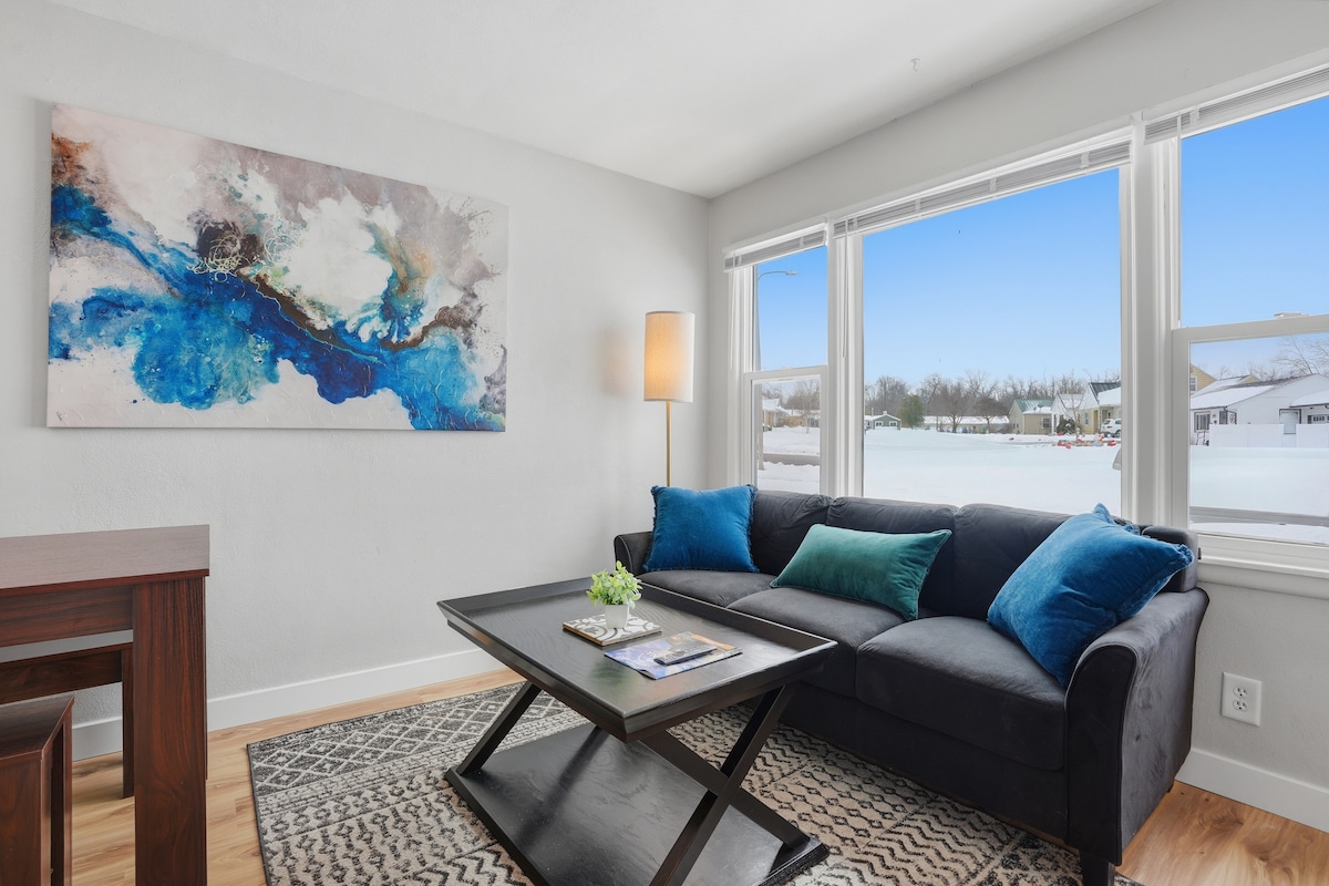 When they say location is everything, they were talking about Sandstone Haus. Located just a few steps from all the action of Main Street. Wineries, Brewery, eateries, bakery, and boutique shopping are waiting for you in Amana Colonies. Book your stay in this spacious one bedroom (queen size bed) and oversized living room suite that includes a queen pull out couch for additional guests, large eat in kitchen for four people. If you need a workspace, this suite has one! Book today.