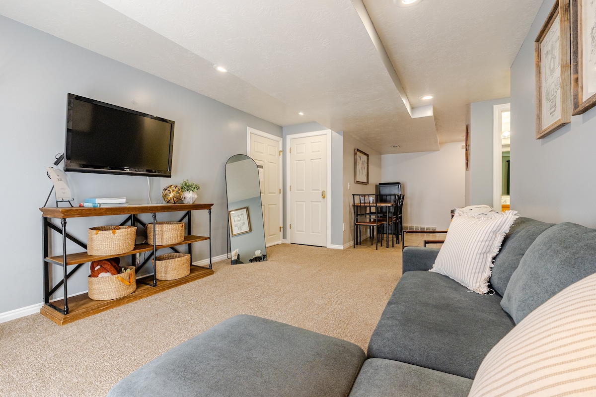 Being away from home can be UNCOMFORTABLE! But it doesn't have to be. This adorable basement apt is perfect whether you're visiting family, working remotely, or need a night away. You get the feel of a boutique hotel with the privacy of a quiet neighborhood and all the comforts of home (parking w/o the awkward backyard entry, full kitchen & laundry, Zoom-friendly workspaces, etc). PLUS you're centrally located for both Utah and Salt Lake counties and just minutes from the mountains!