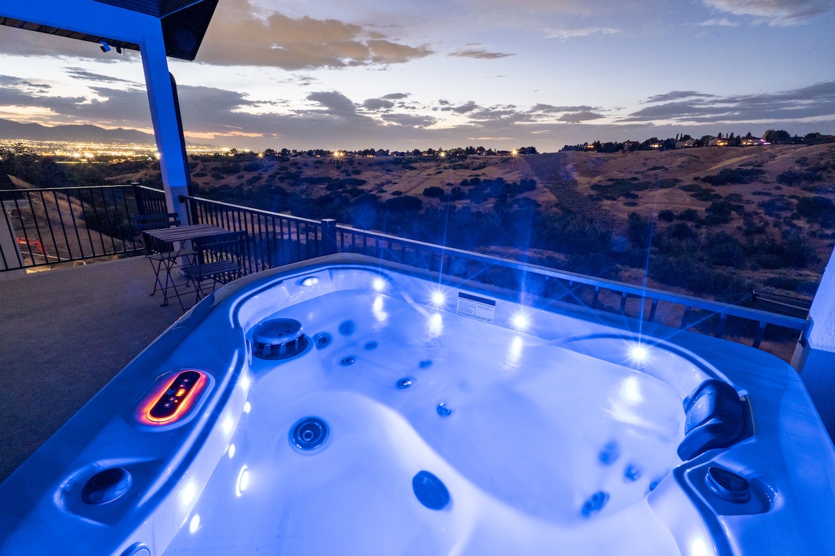 Nestle into this charming, modern, 1100 sq ft guest suite! Spend a wonderful evening out on your private deck and hot tub with an exquisite view of the valley, mountains, and wildlife. This spacious upstairs unit is in a private neighborhood along Dimple Dell Recreation Park, with miles of trails, home to runners, equestrians and bikers. Just 5 min from Little Cottonwood Canyon with World-Class Skiing & Hiking. Close to anything/everything you need. 1 private king bdrm & 1 pull-out queen bed.