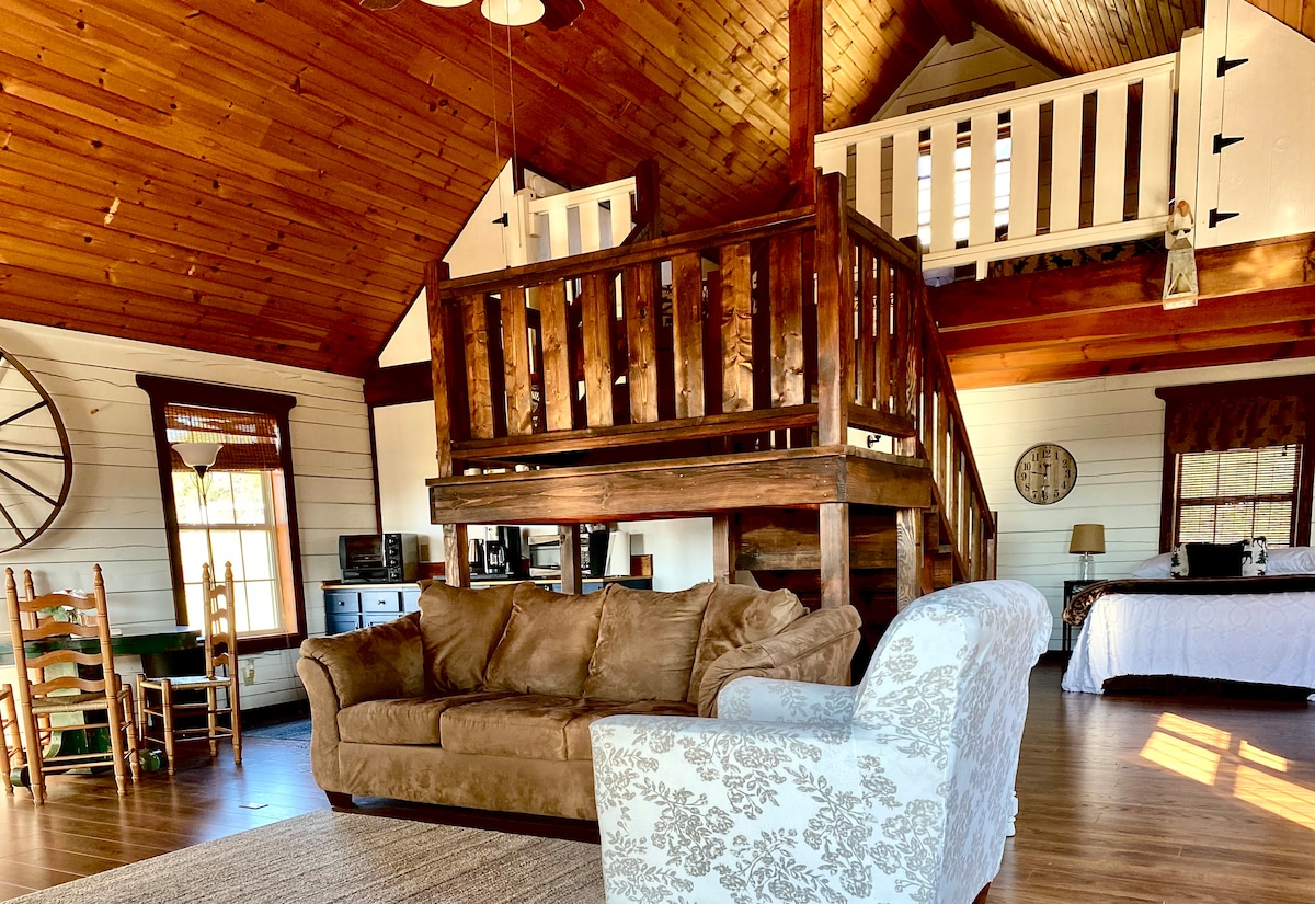 The Cedar Loft is a beautiful space in the country nestled on 40 acres with a fantastic view. Conveniently close to I-40 with a driving time of 35 min. to the Nashville airport or 45 min. downtown Nashville. This brand new above garage loft has a private entrance. Kitchen offers granite counters, fridge, microwave, oven, and dishwasher. For laundry there is a washer/dryer combo. We offer wifi, have good cellular reception and offer an assortment of DVDs and board games.