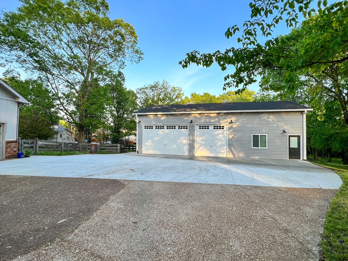 Beautifully decorated space nestled in a quiet, country setting near Nashville on 2.5 acres. Relax and unwind after a long day with brand new memory foam queen mattresses, soft linens, plenty of places to unpack, complimentary snacks, and coffee bar. Covered patio to enjoy rain or shine. Blazing fast WiFi with ethernet; TV with Netflix included.