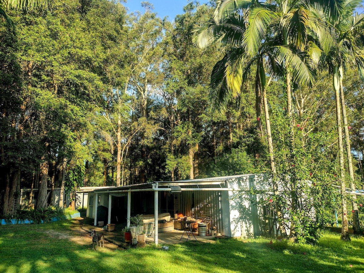 Studio@Mimburi offers guests a secluded, peaceful and environmentally friendly self-contained studio set amongst rainforest and eucalyptus trees. Our 95 acre property boasts spectacular views of the Glasshouse Mountains and abuts the Bellthorpe National Park. Just a short 20 minute drive to Maleny, Beerwah and Woodford. The studio touts exposed wooden trusses, contemporary furnishings, polished cement flooring, fully serviced kitchen, modern bathroom and a wood fired heater (firewood provided).