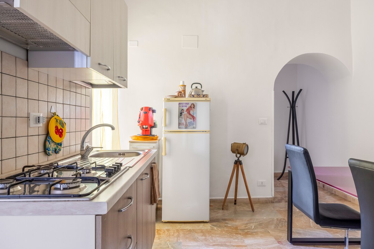 BENVENUTI Il Bilocale vi regalerà una totale privacy. È composto da: una stanza con con 1 letto matrimoniale, una cucina e bagno entrambi privati. Non appena usciti dal Bilocale avrete la possibilità di disporre di un confortevole living room e uno splendido terrazzo con tante piante che condividerete insieme agli altri ospiti. La palazzina, recentemente ristrutturata, è sita tra La Galleria d’arte Moderna e Piazza Rivoluzione con accesso a tutte le attrazioni locali!!