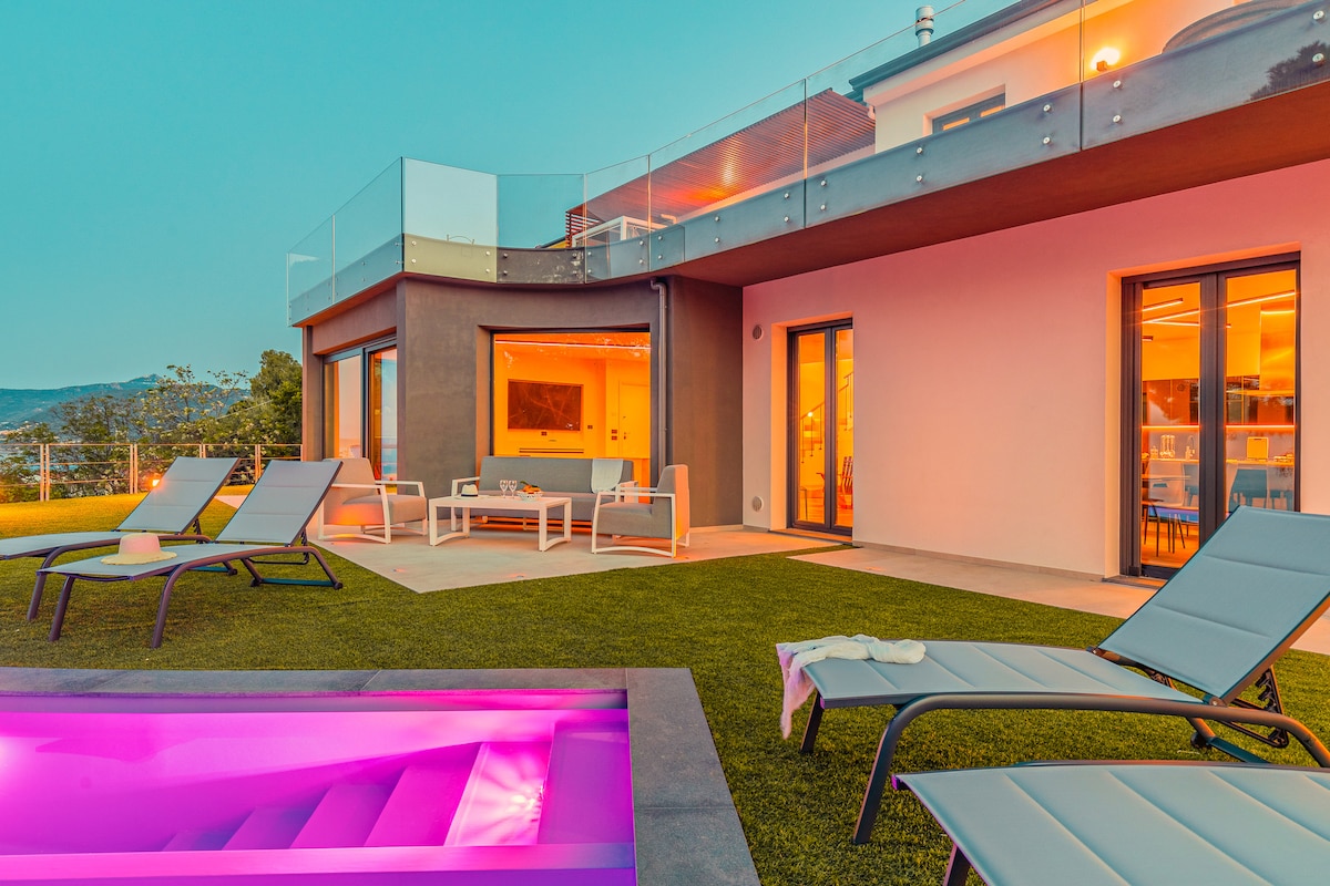 别墅隐匿在绿色植物之中,配备水疗桑拿和烧烤设施