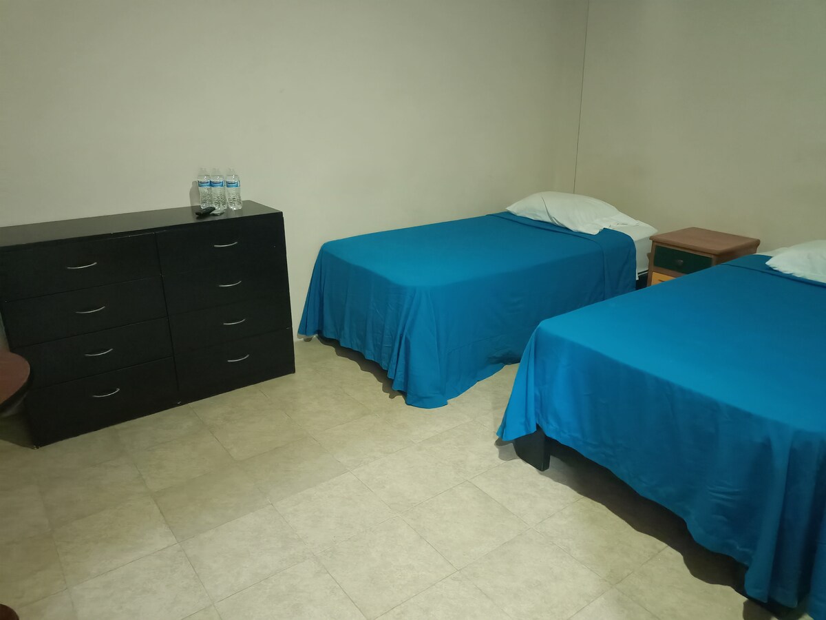 Disfruta de la sencillez de este alojamiento tranquilo, céntrico, y agradeable. Cuenta con 3 habitaciones, 2 camas matrimoniales y 2 camas individuales. 2 pantallas, internet, cocina integral equipada, agua caliente 24/7 y todo listo para tu estancia. Privada con acceso automatizado, con estacionamiento para 2 autos. zona segura, Junto al Eje Norponiente, cerca de los Juzgados Civiles y el Tribunal Fiscal, SAT, PJF, zonas industriales., plazas comerciales, hospitales, el Club de golf, etc.